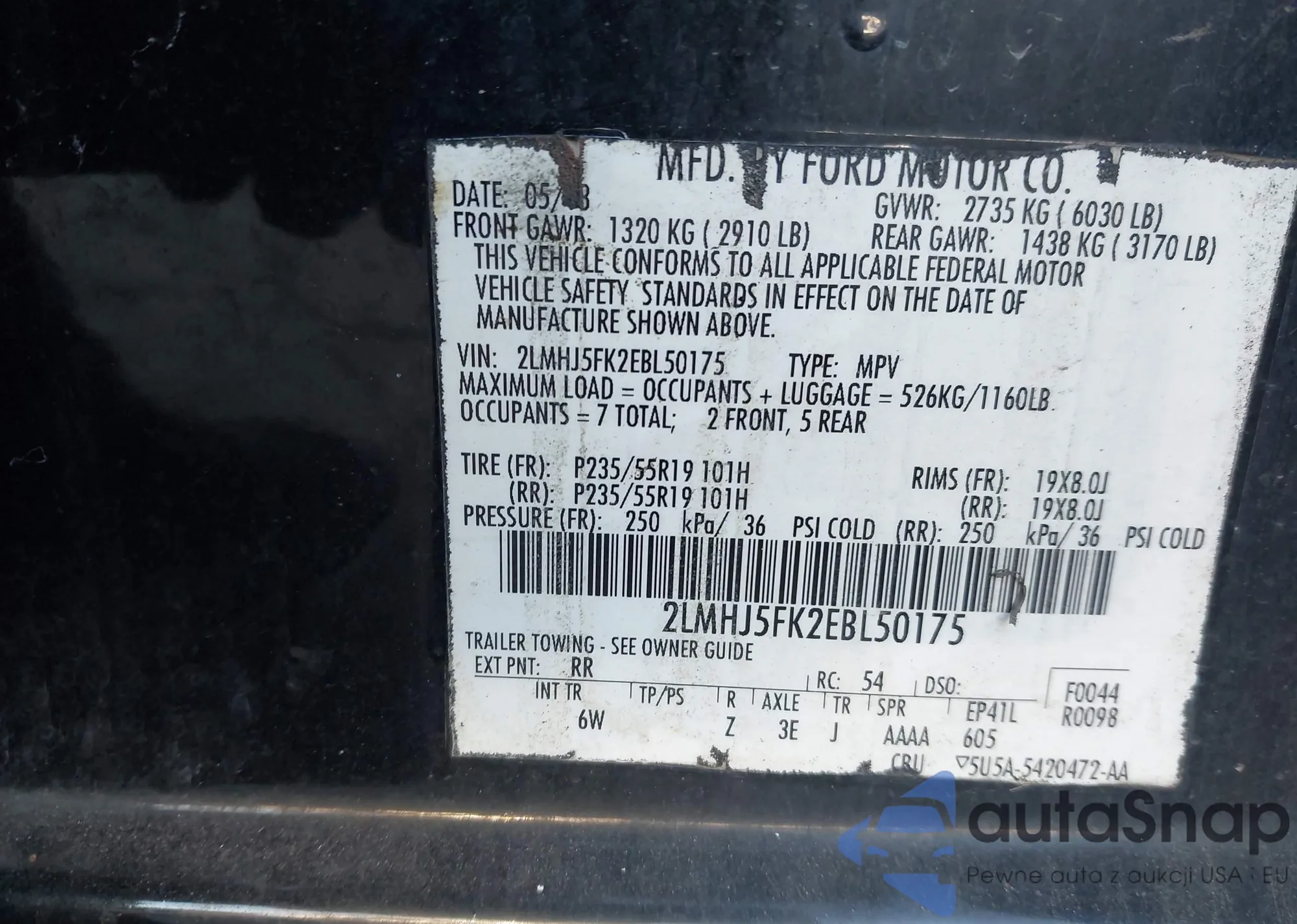 The car Lincoln MKT 2014 (VIN 2LMHJ5FK2EBL50175) has already been auctioned 1 times and/or is sold by an unverified seller. We recommend checking the Carfax report and confirming registration possibilities before purchase.