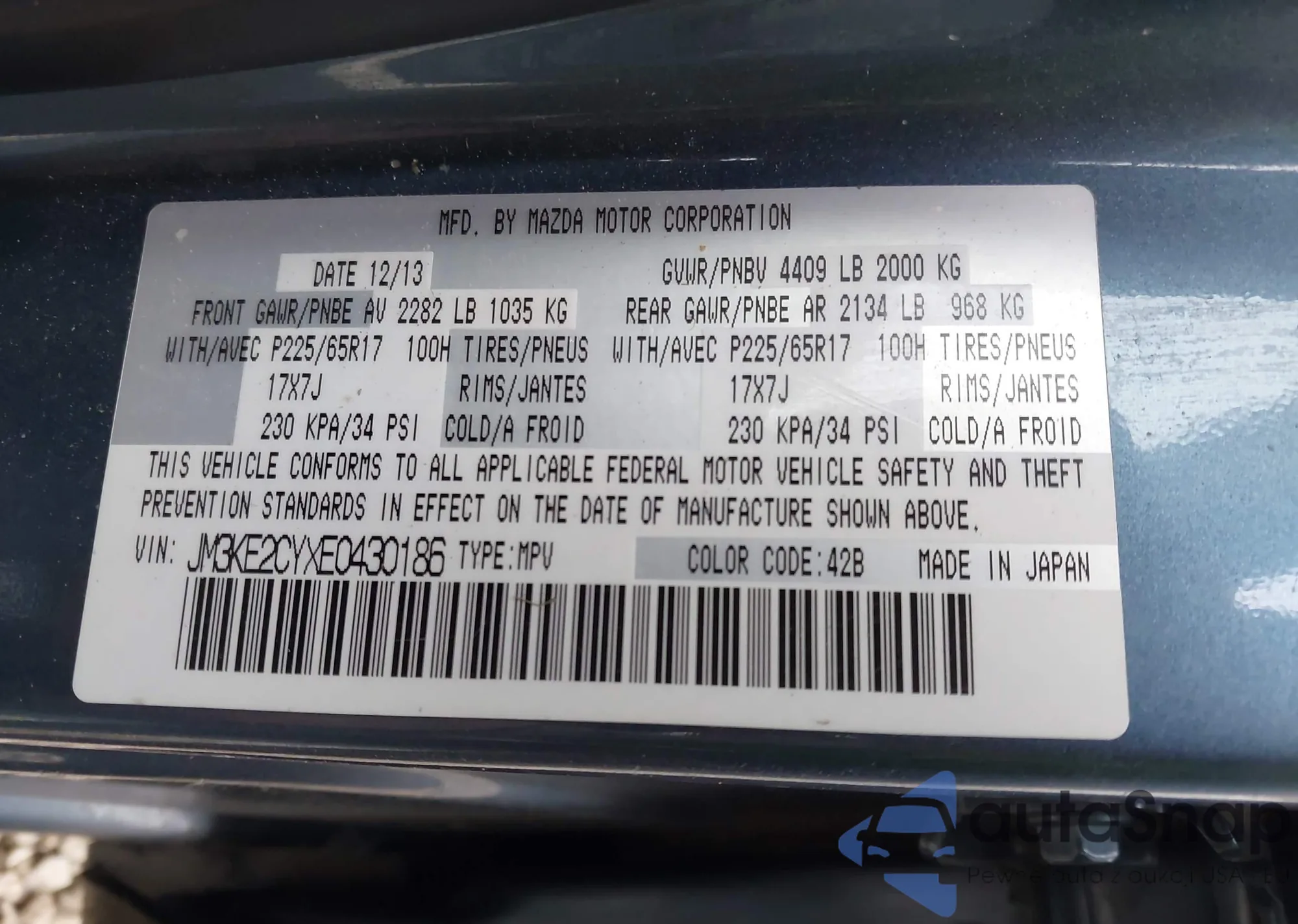 • VIN: JM3KE2CYXE0430186