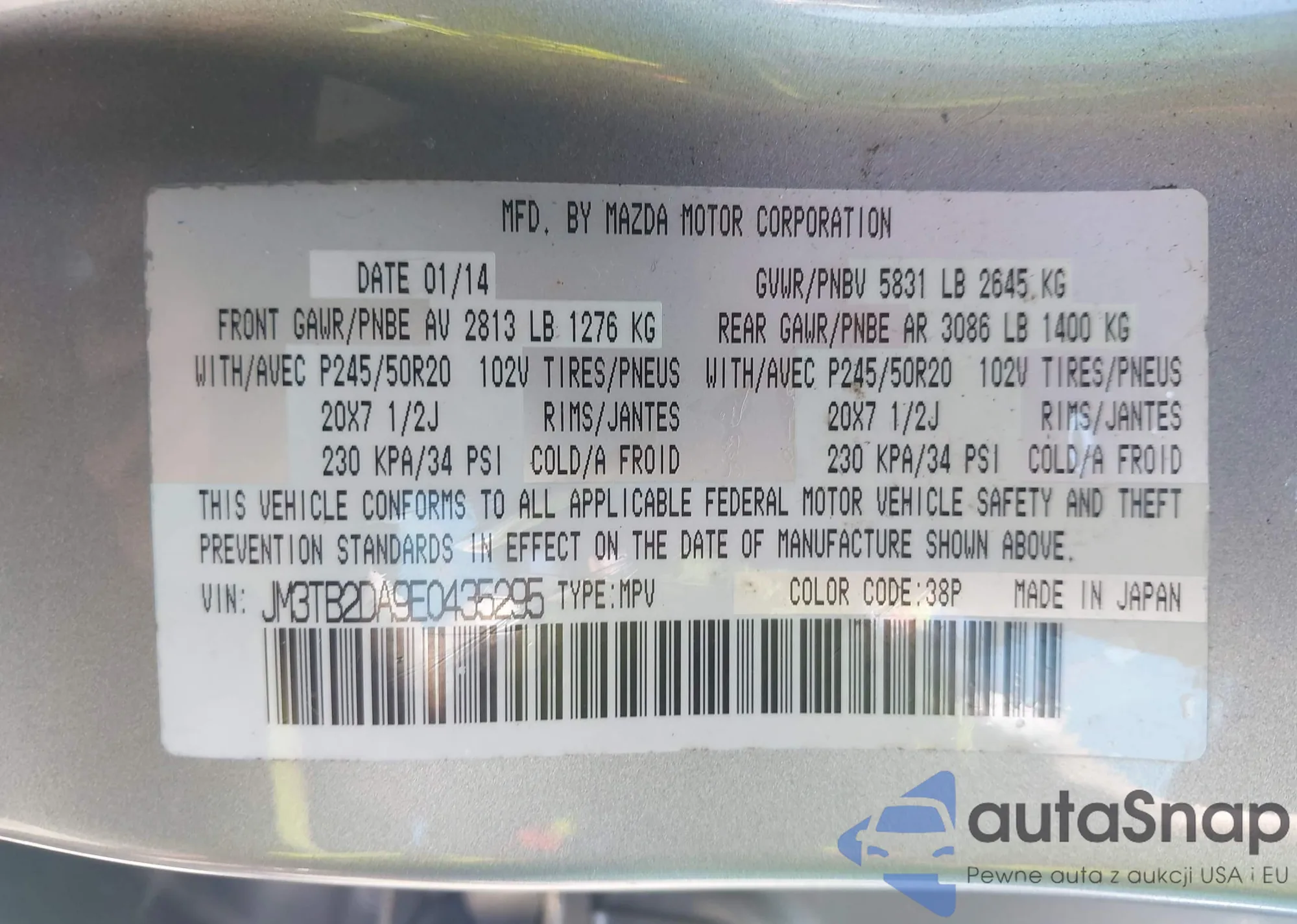 VIN: JM3TB2DA9E0435295