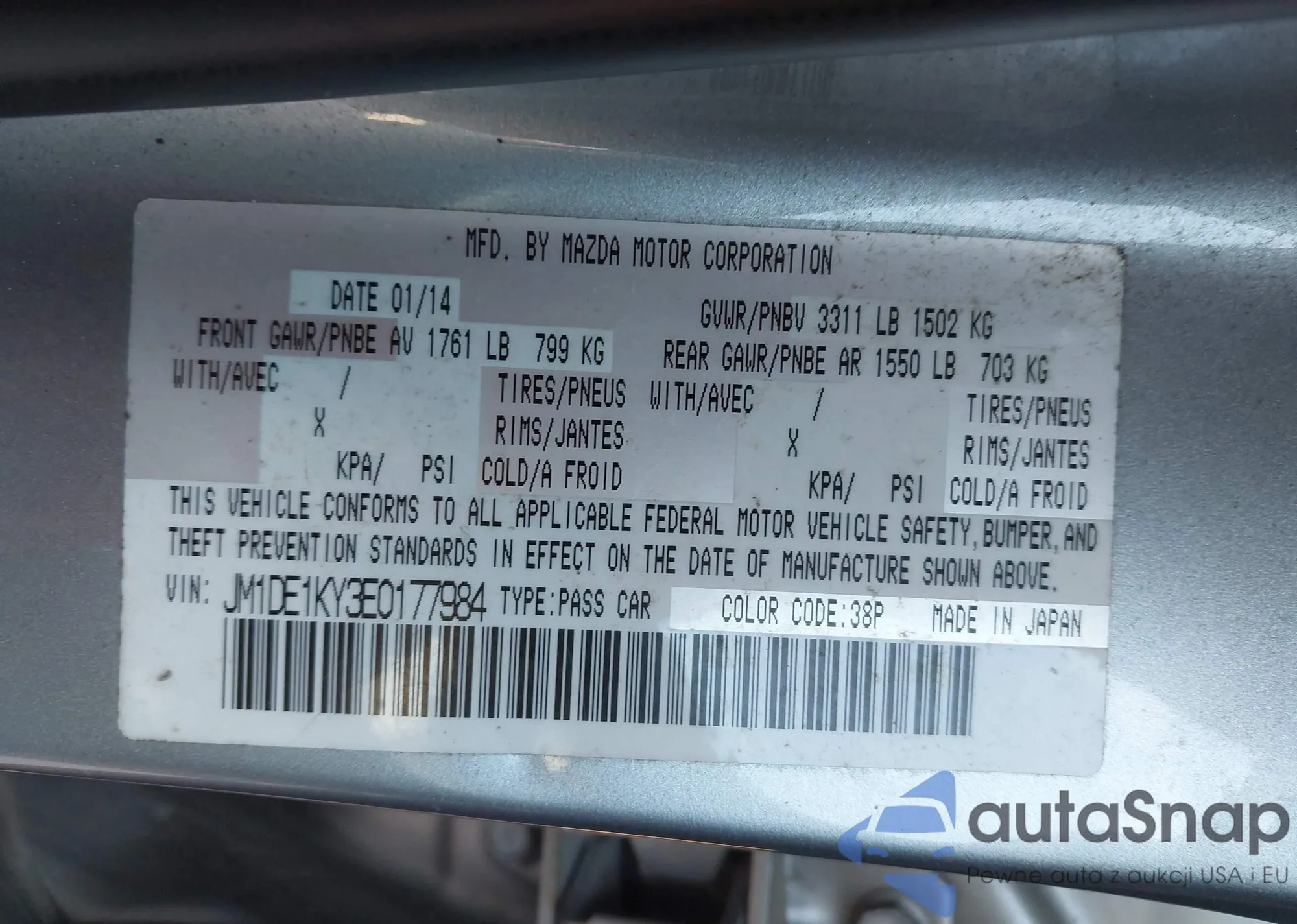 VIN: JM1DE1KY3E0177984