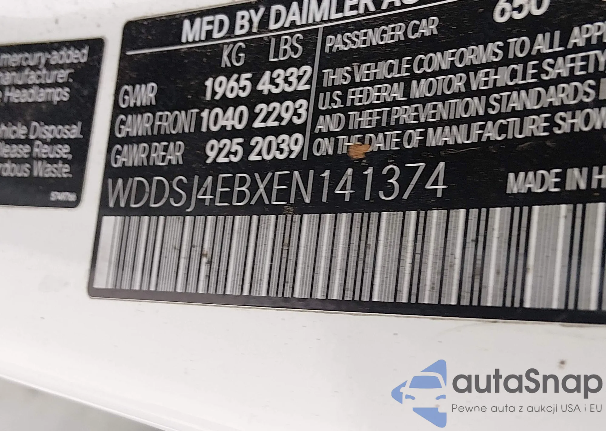 The car Mercedes-Benz CLA-klasse 2014 (VIN WDDSJ4EBXEN141374) is sold by an unverified seller. We recommend checking the Carfax report and confirming registration possibilities before purchase.