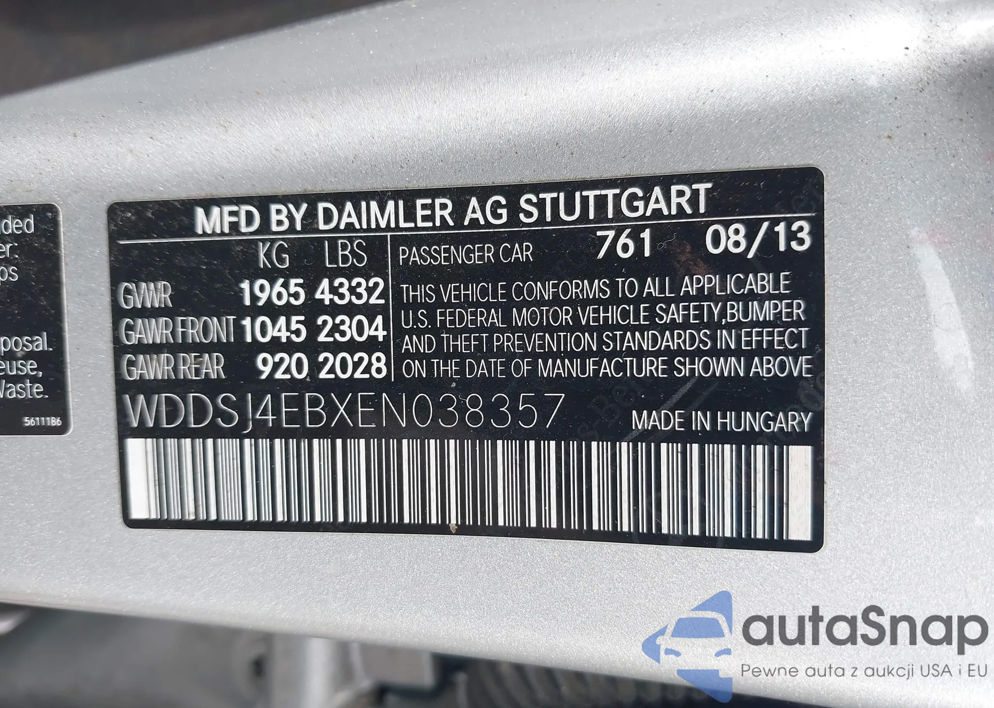 • VIN: WDDSJ4EBXEN038357
