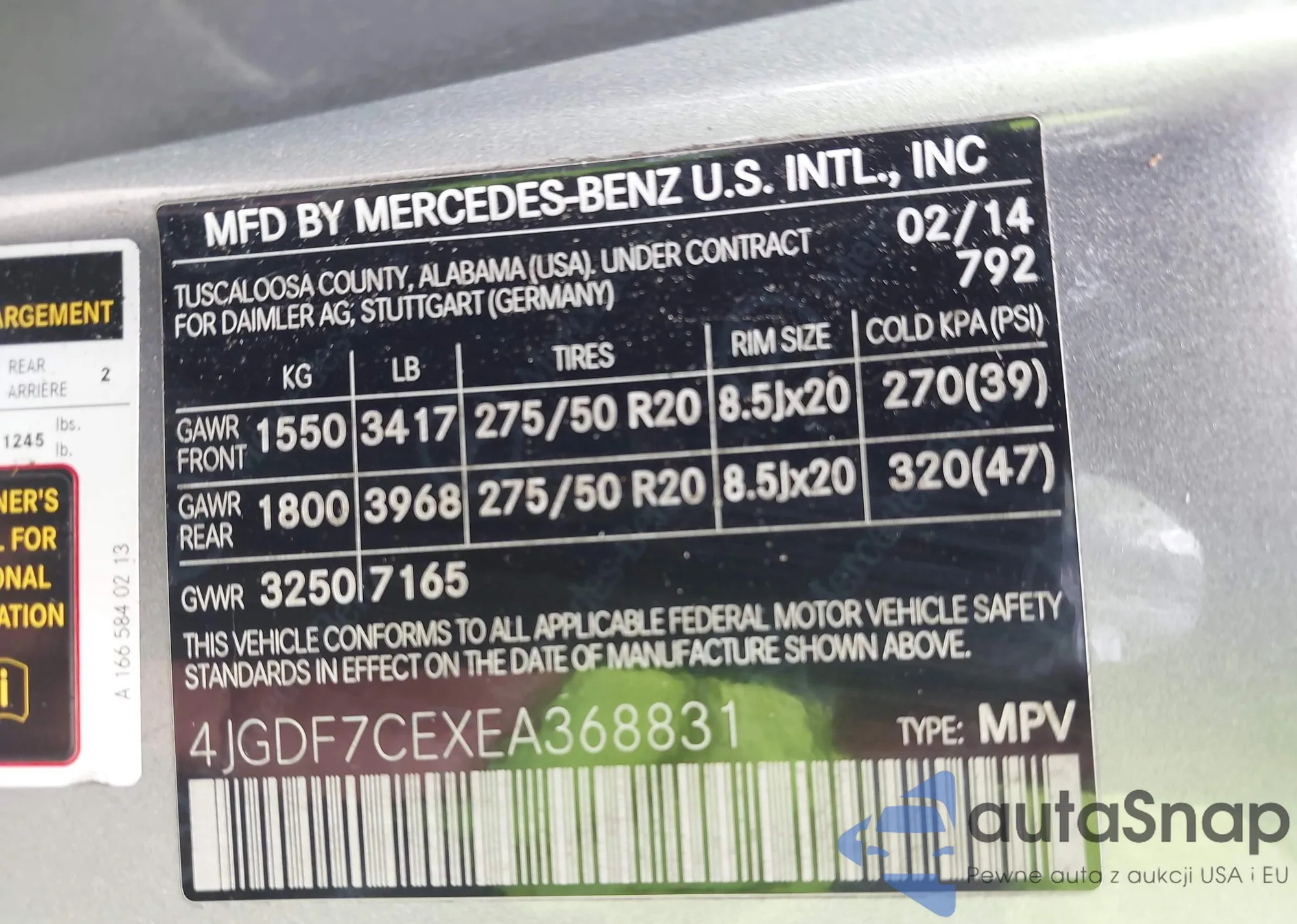 VIN: 4JGDF7CEXEA368831