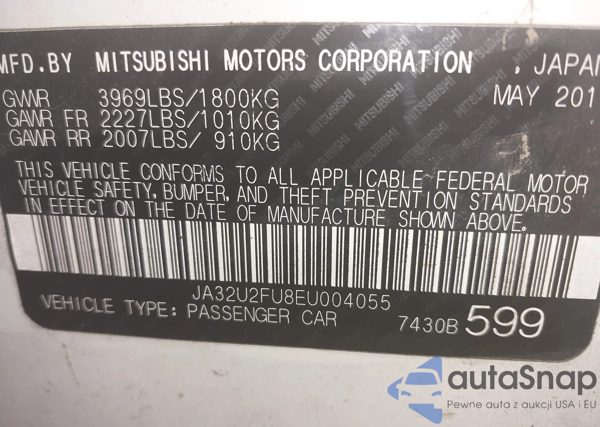 VIN: JA32U2FU8EU004055
