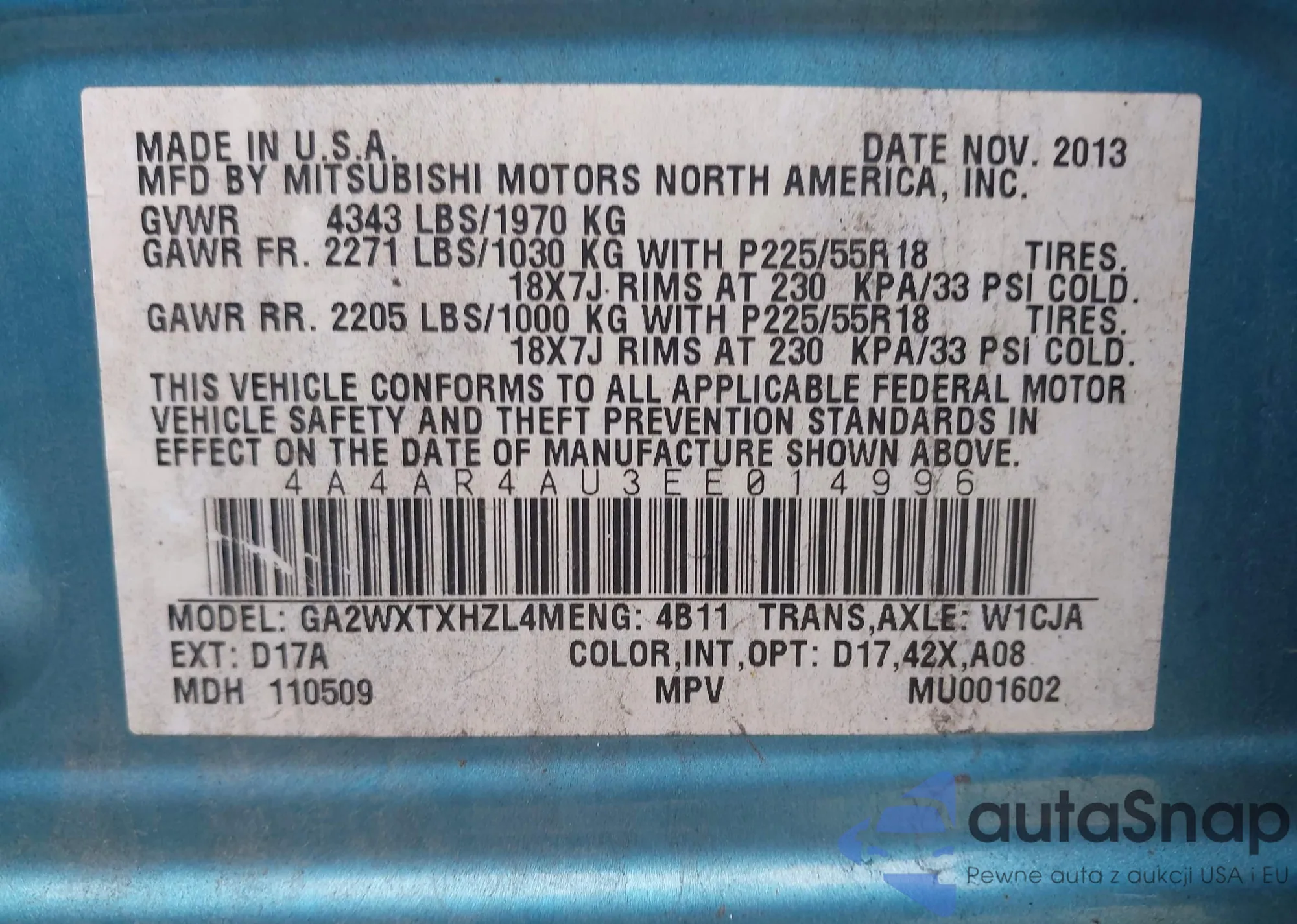 VIN: 4A4AR4AU3EE014996