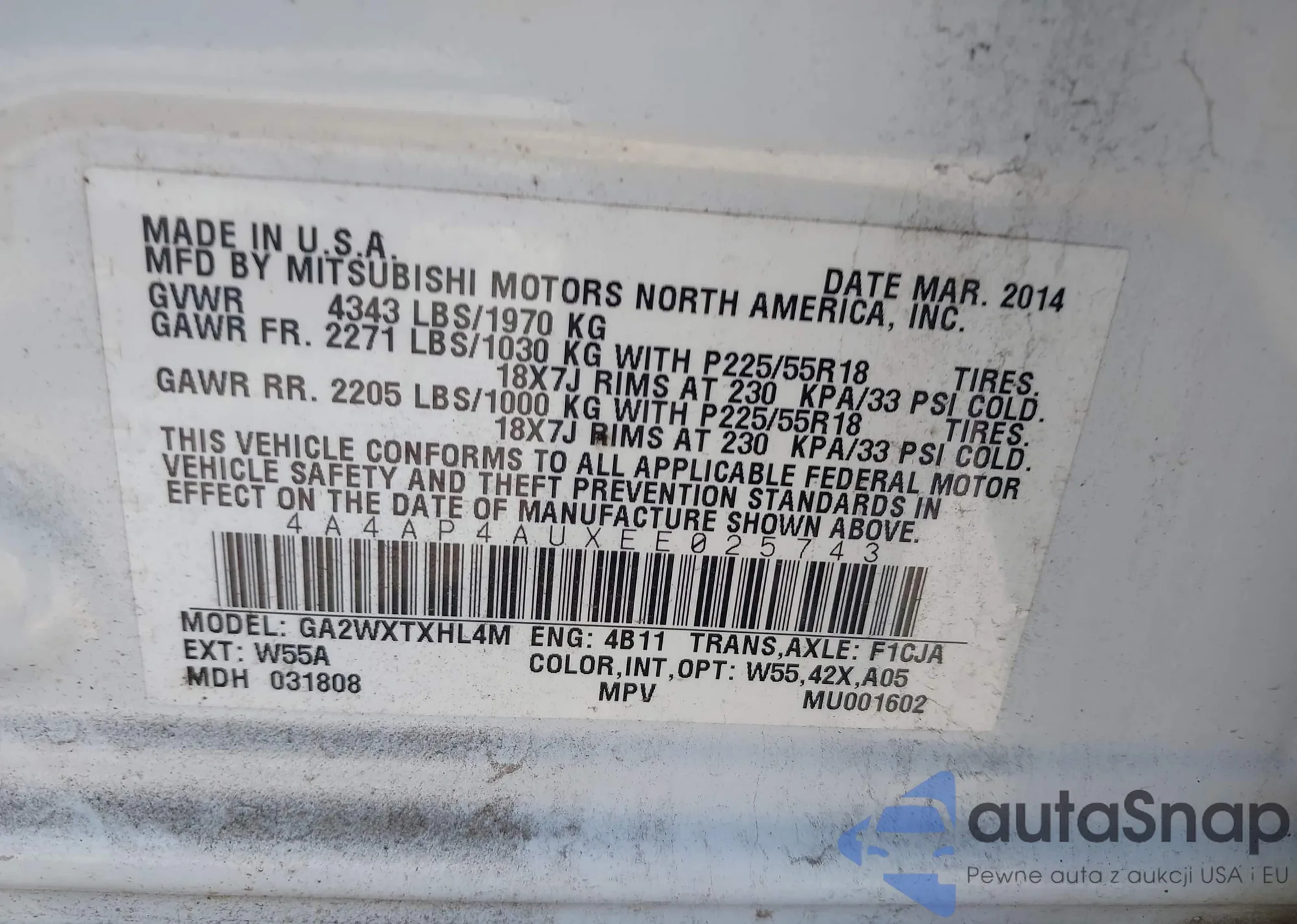 Mitsubishi Outlander 2014 – Vehicle History (Sold at IAAI)