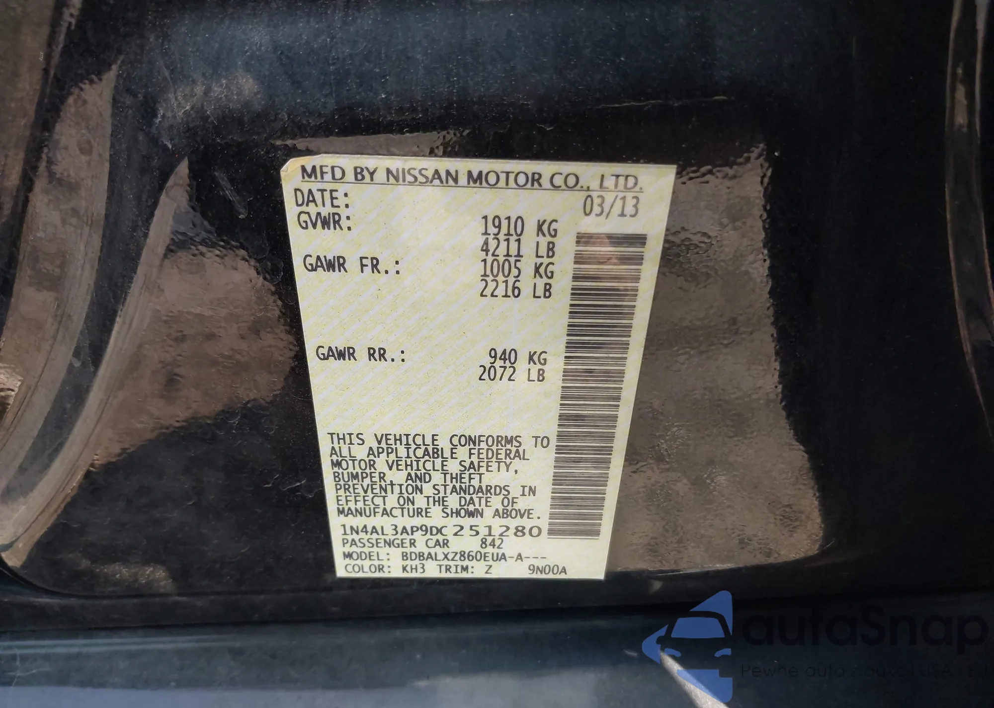 VIN: 1N4AL3AP9DC251280
