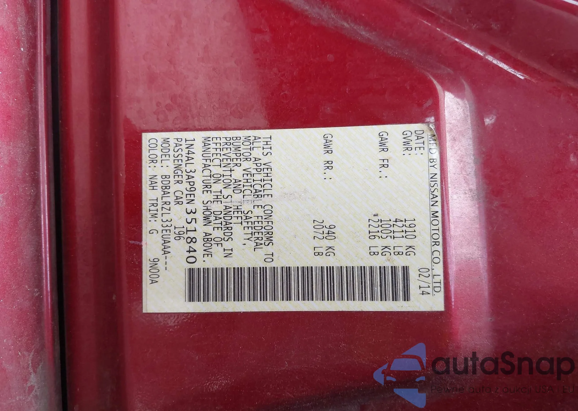 • VIN: 1N4AL3AP9EN351840