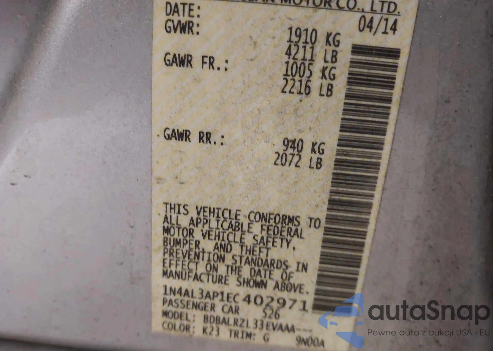VIN: 1N4AL3AP1EC402971