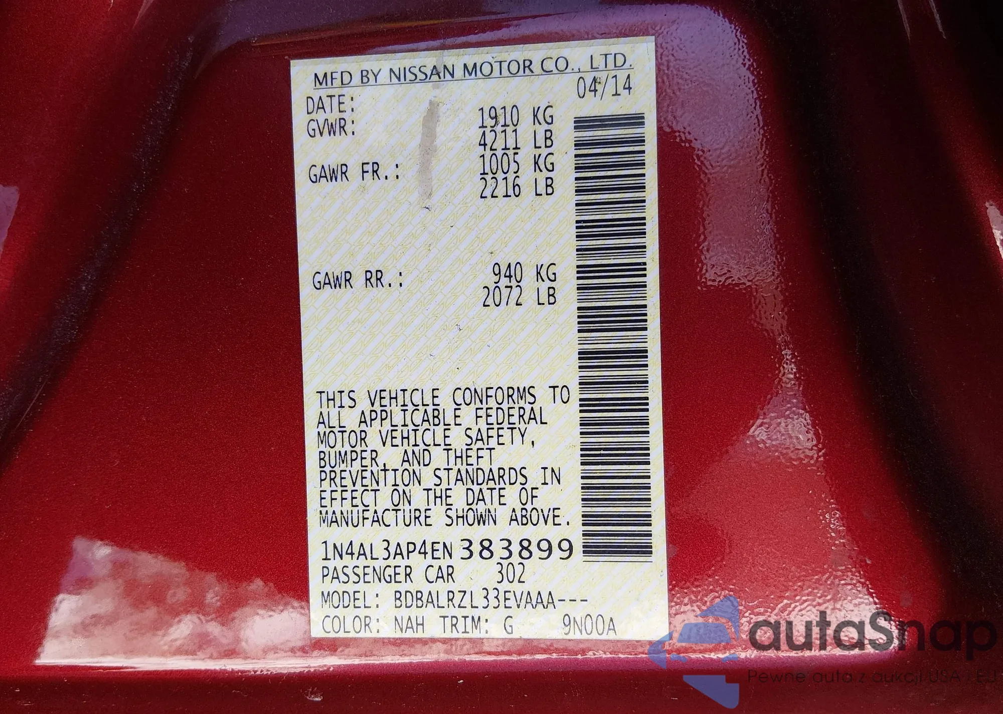 The car Nissan Altima 2014 (VIN 1N4AL3AP4EN383899) is sold by an unverified seller. We recommend checking the Carfax report and confirming registration possibilities before purchase.