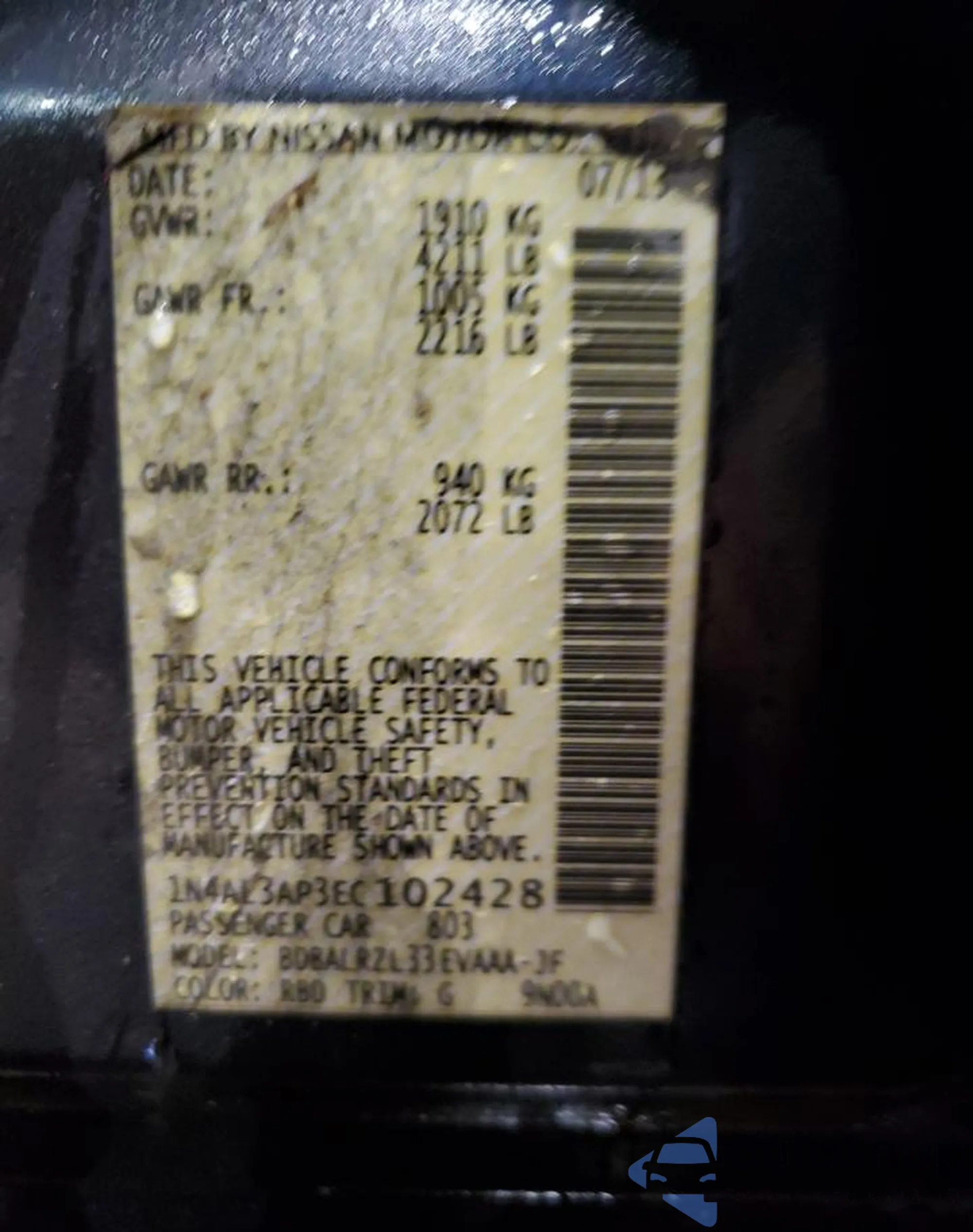 VIN: 1N4AL3AP3EC102428