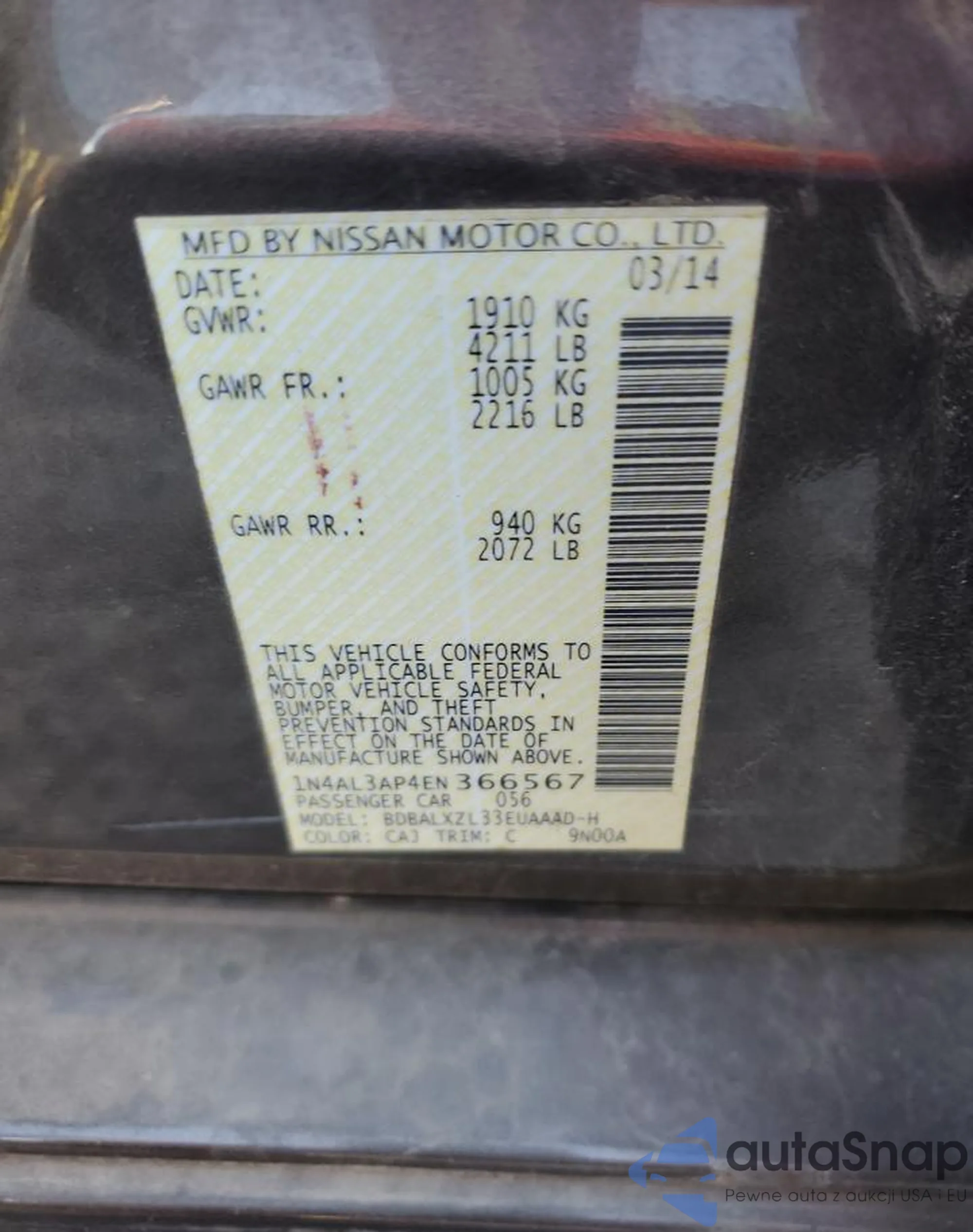 VIN: 1N4AL3AP4EN366567