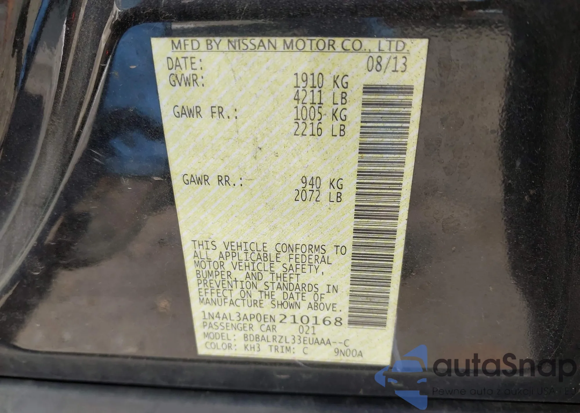 VIN: 1N4AL3AP0EN210168