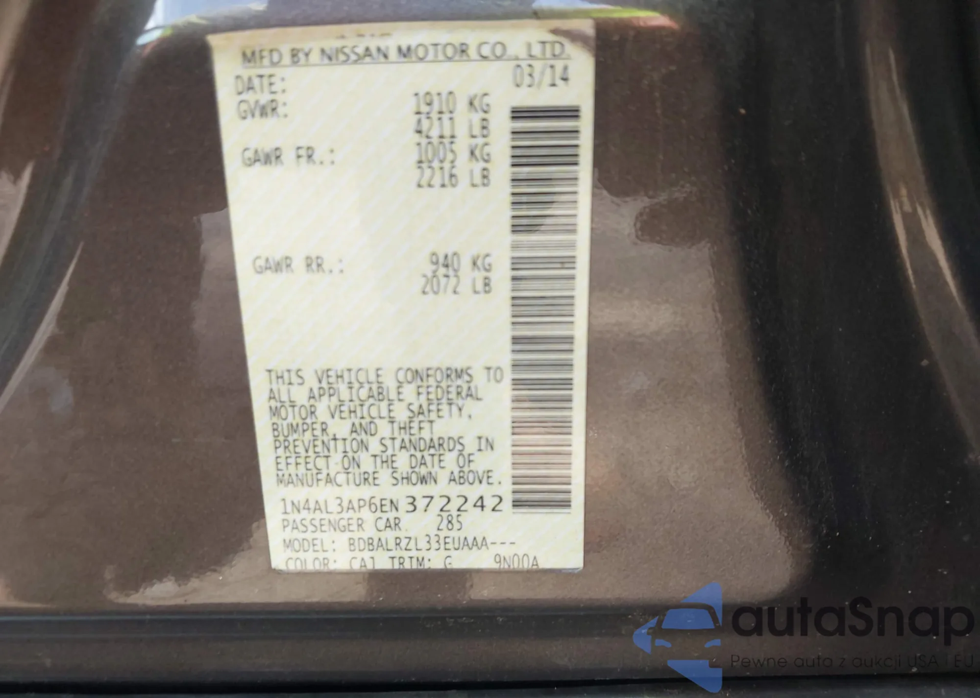 VIN: 1N4AL3AP6EN372242