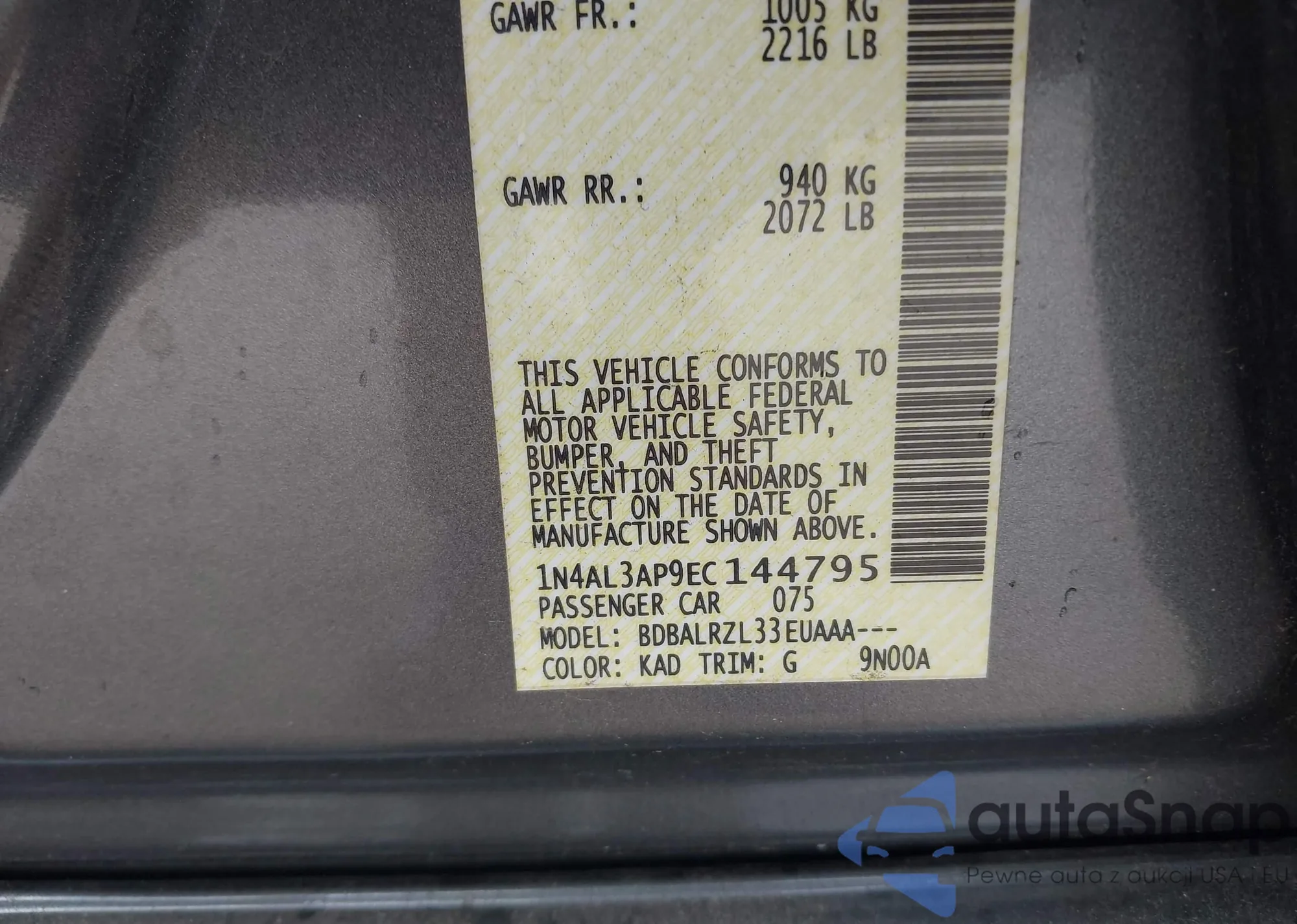 VIN: 1N4AL3AP9EC144795