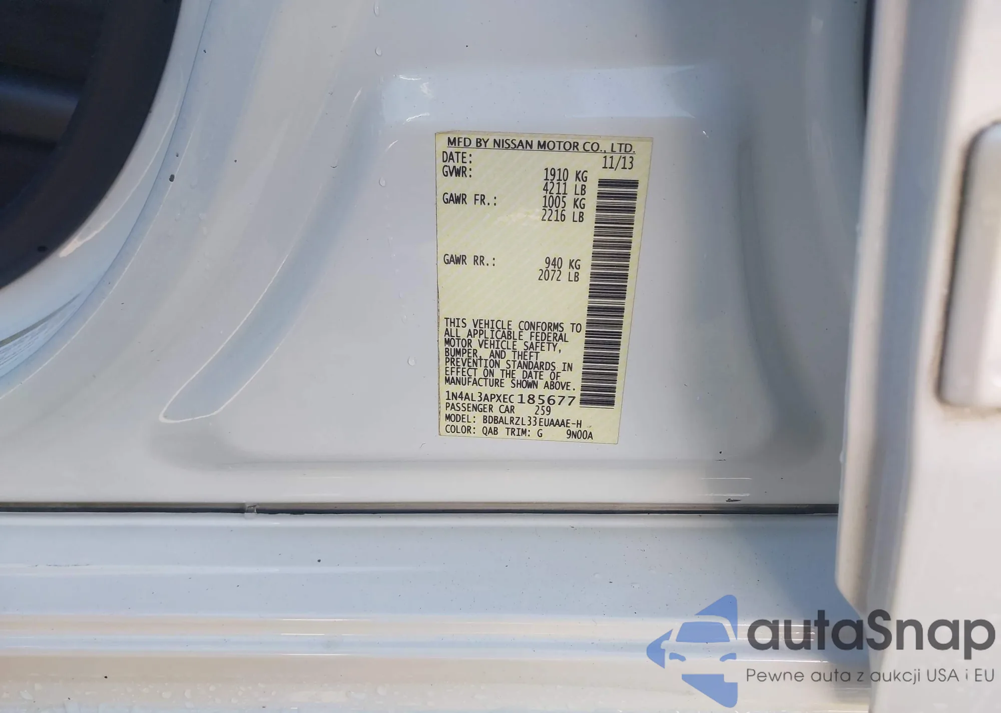 VIN: 1N4AL3APXEC185677