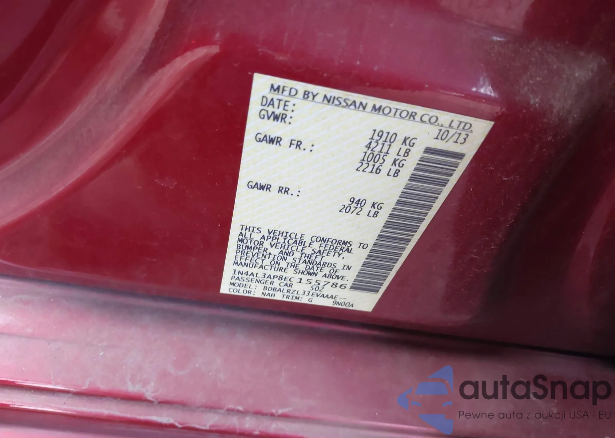 VIN: 1N4AL3AP8EC155786