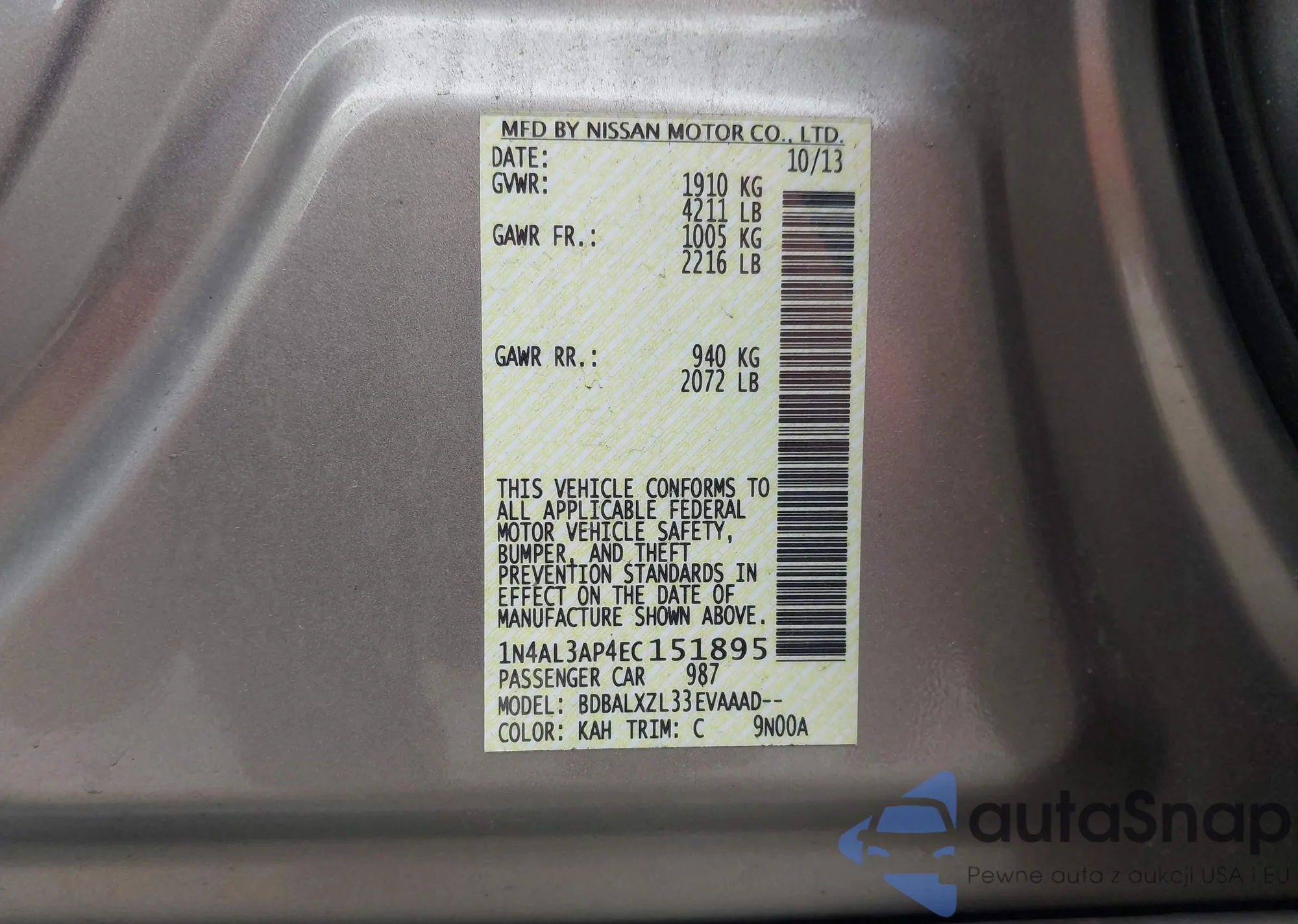 VIN: 1N4AL3AP4EC151895