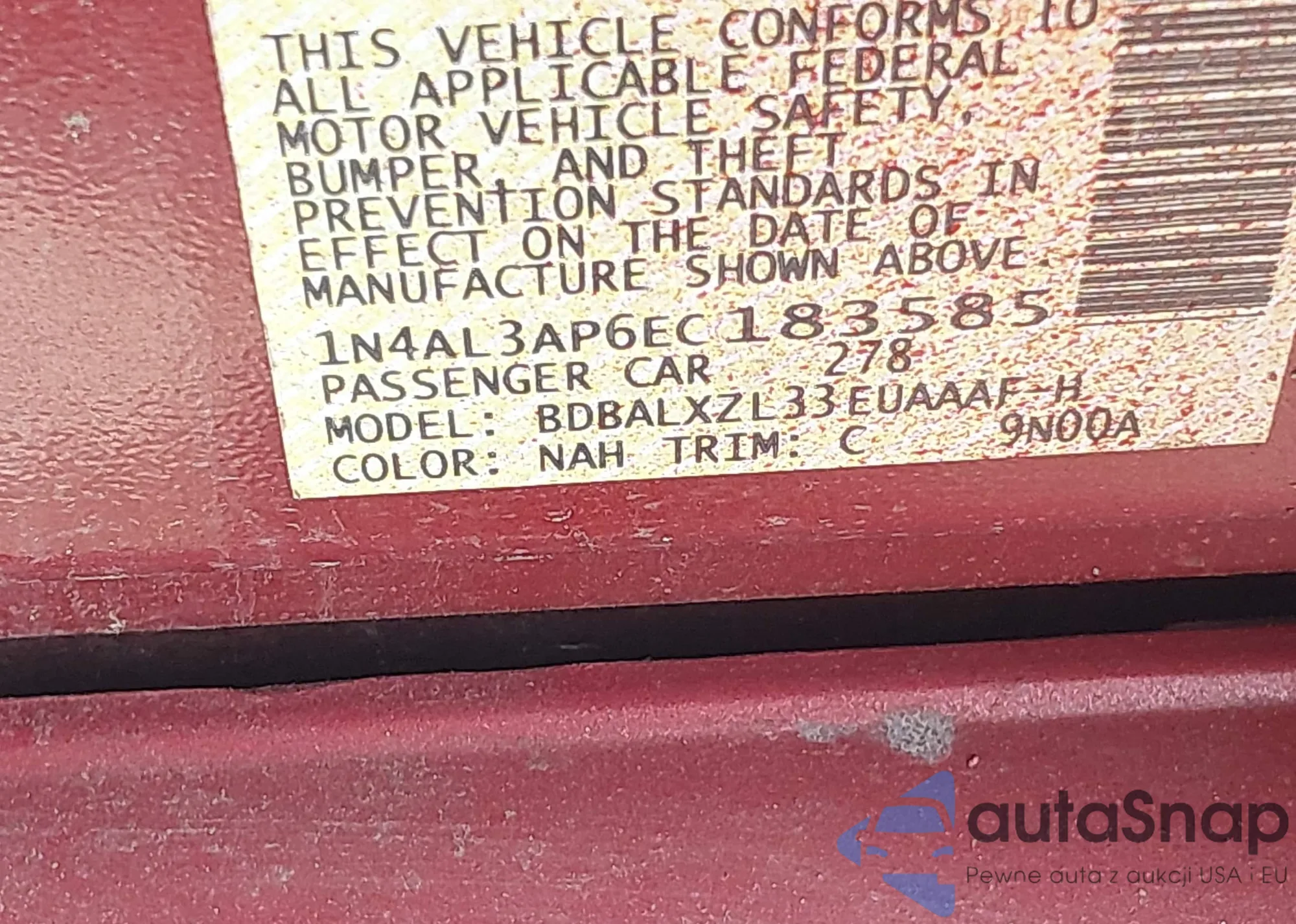 VIN: 1N4AL3AP6EC183585