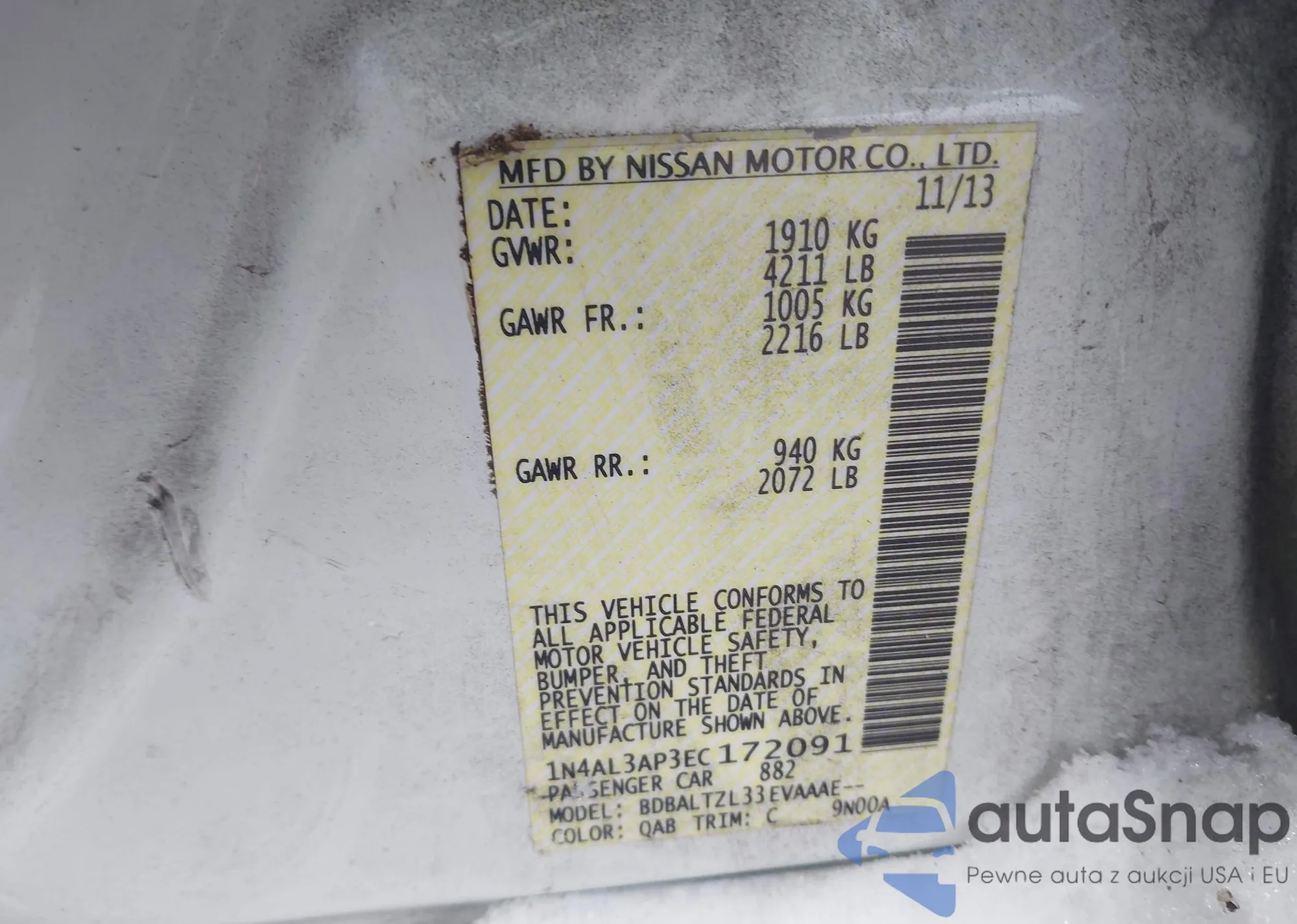 VIN: 1N4AL3AP3EC172091