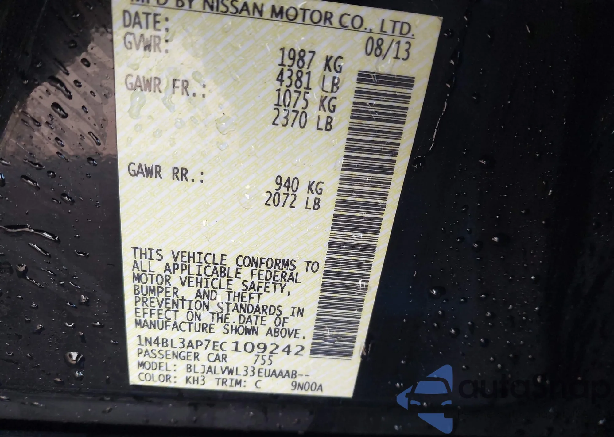 VIN: 1N4BL3AP7EC109242
