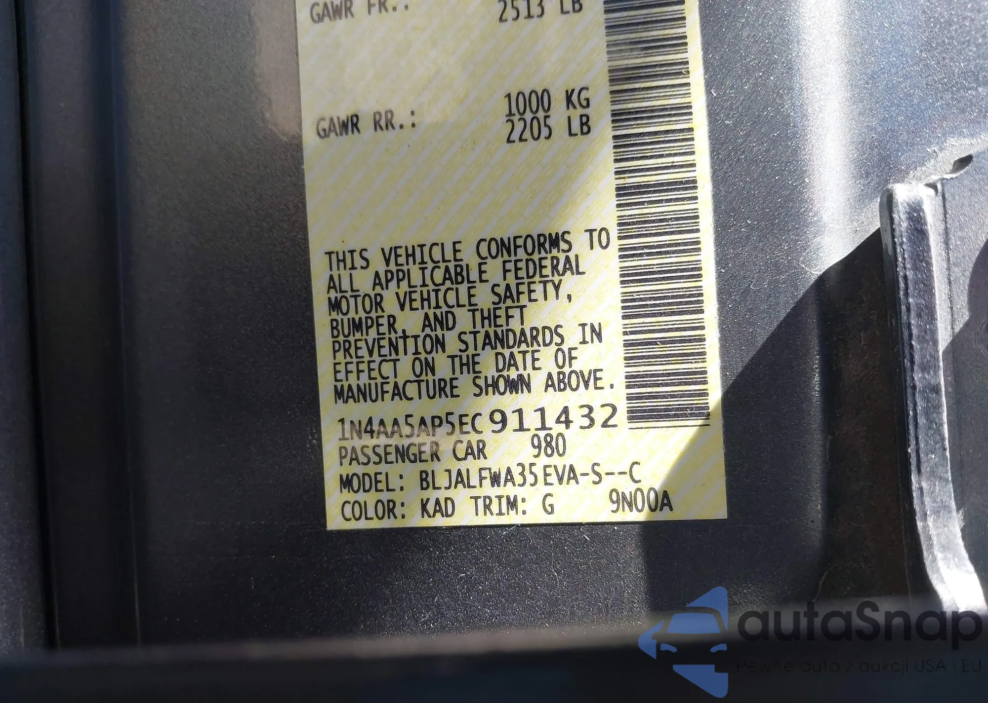 VIN: 1N4AA5AP5EC911432