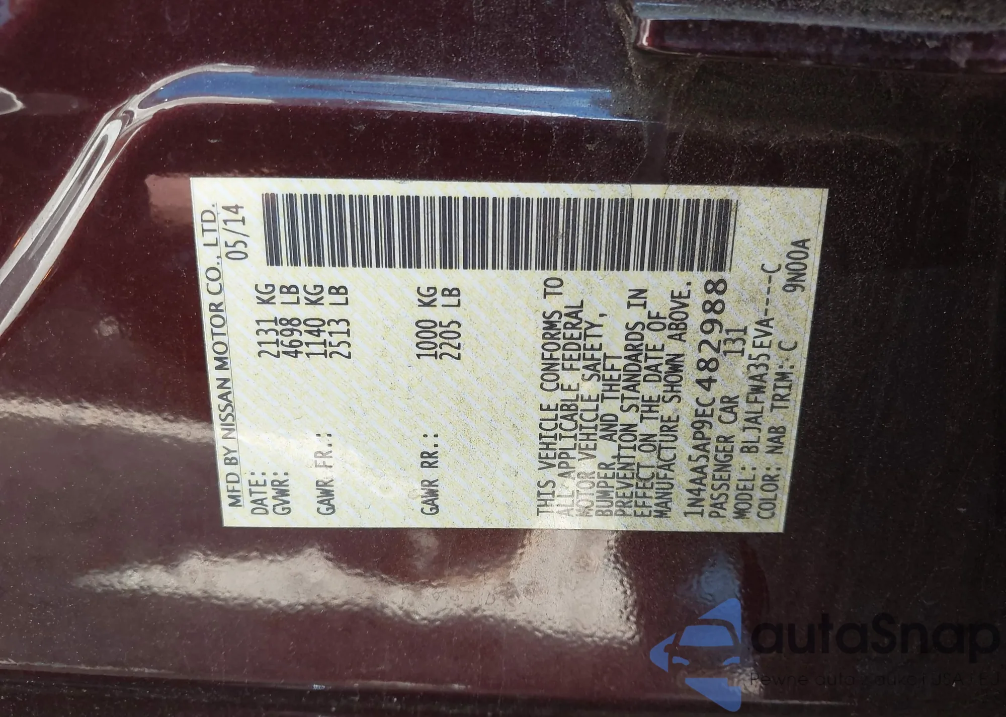 VIN: 1N4AA5AP9EC482988