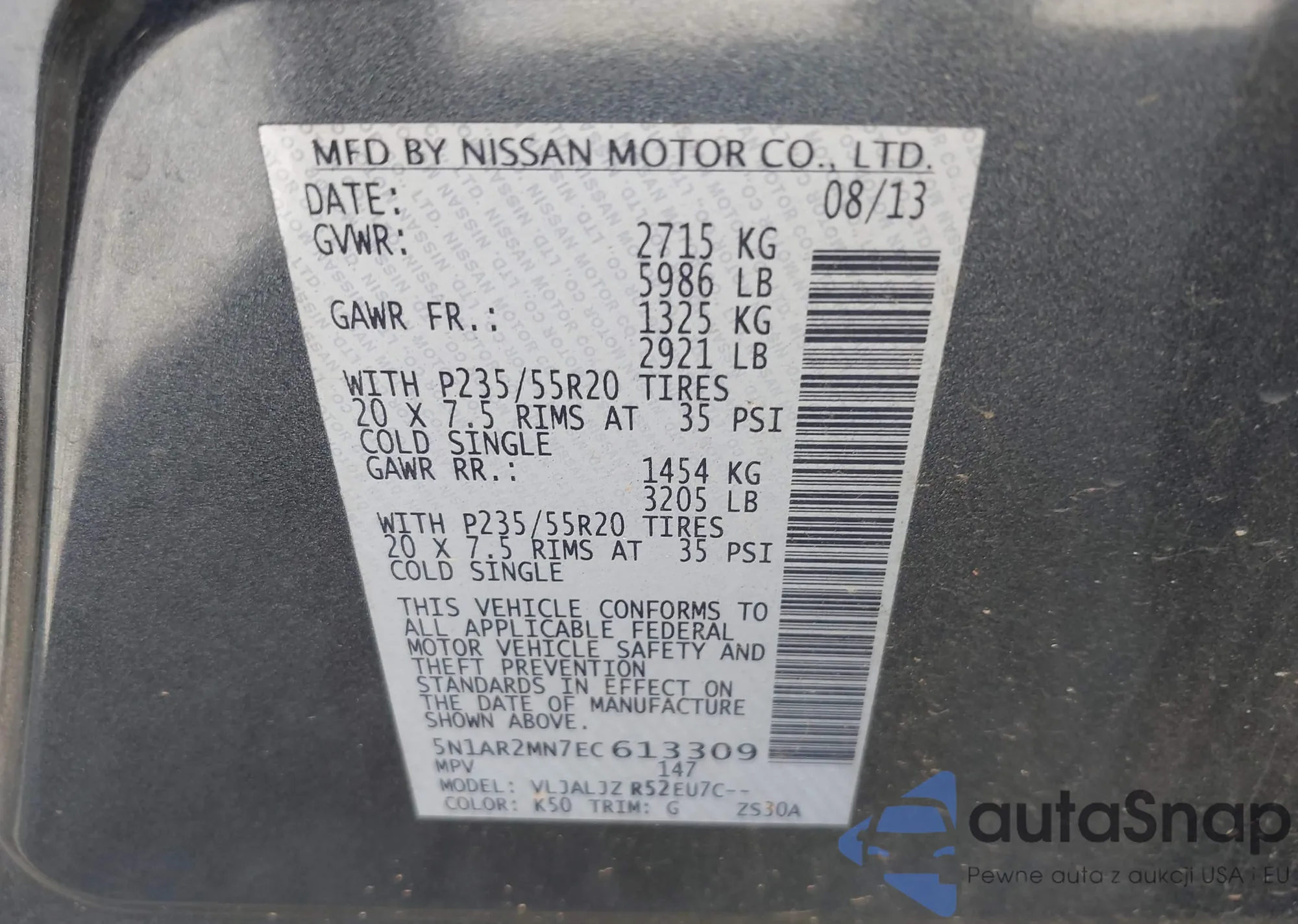 VIN: 5N1AR2MN7EC613309