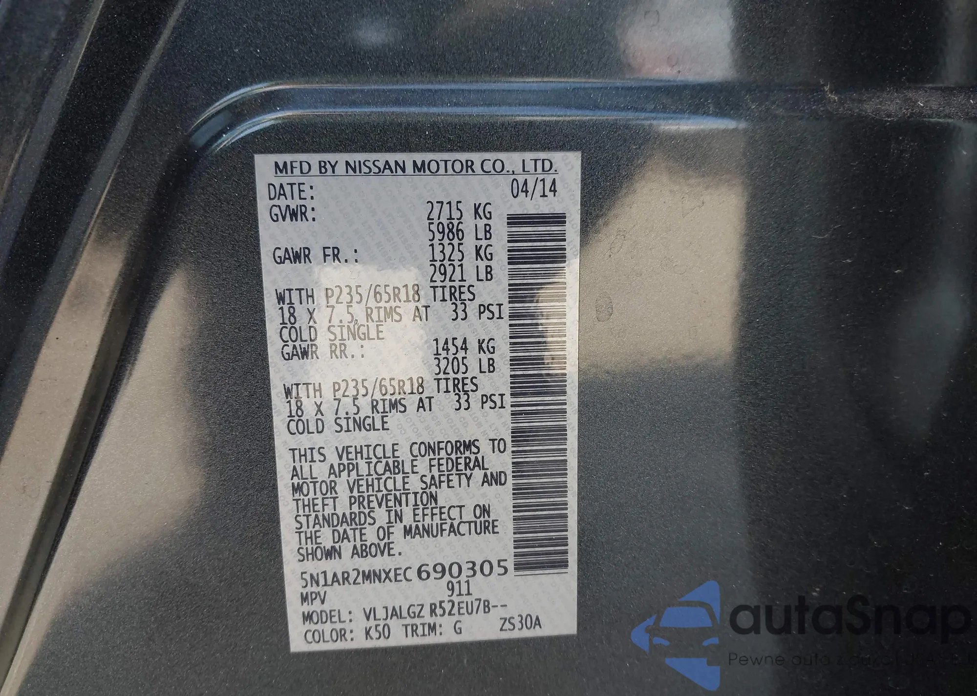 VIN: 5N1AR2MNXEC690305