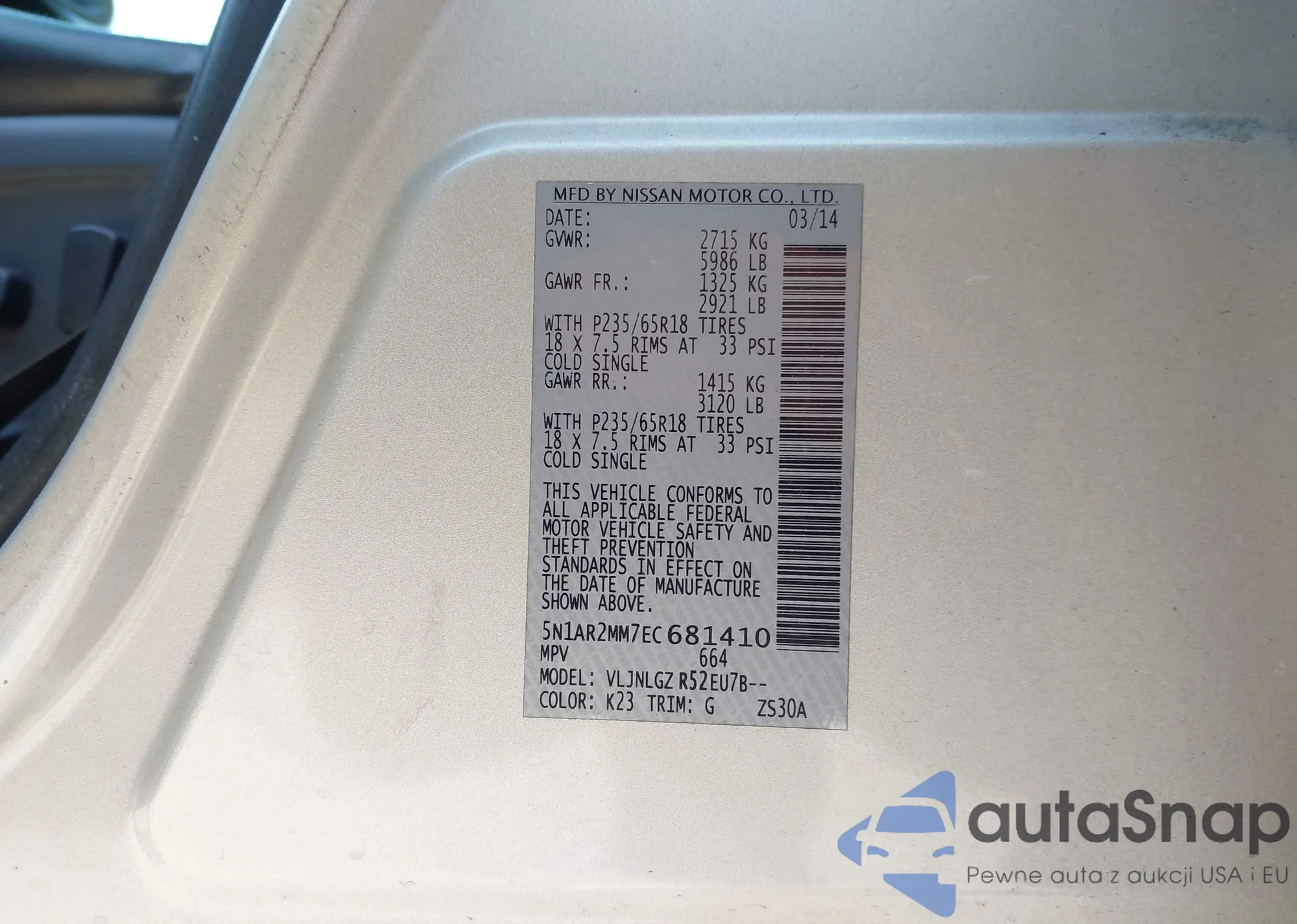 VIN: 5N1AR2MM7EC681410