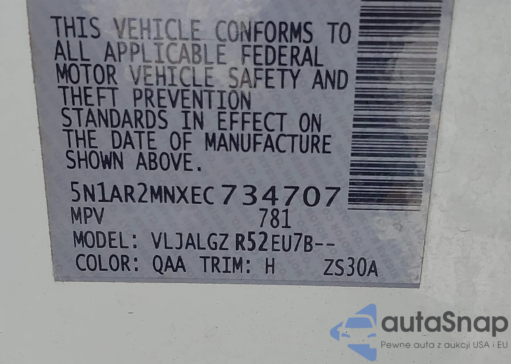 VIN: 5N1AR2MNXEC734707