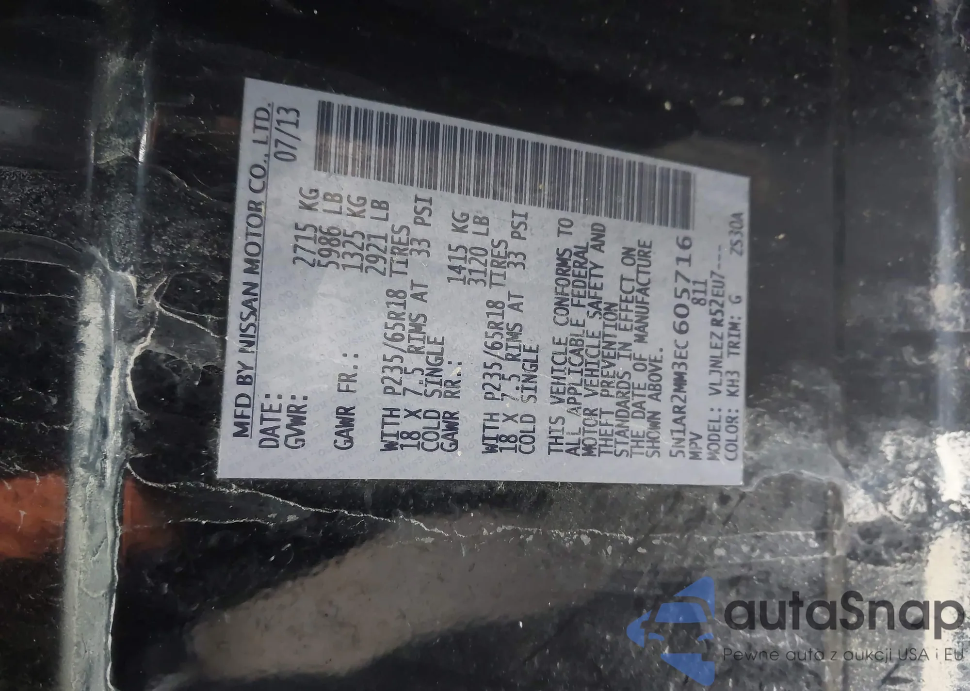 The car Nissan Pathfinder 2014 (VIN 5N1AR2MM3EC605716) has not been auctioned before. The documents are clean, and the mileage matches or is below the market average. Sold by an insurance company – we recommend purchase. Delivery to the port will take approx. 6–8 weeks.