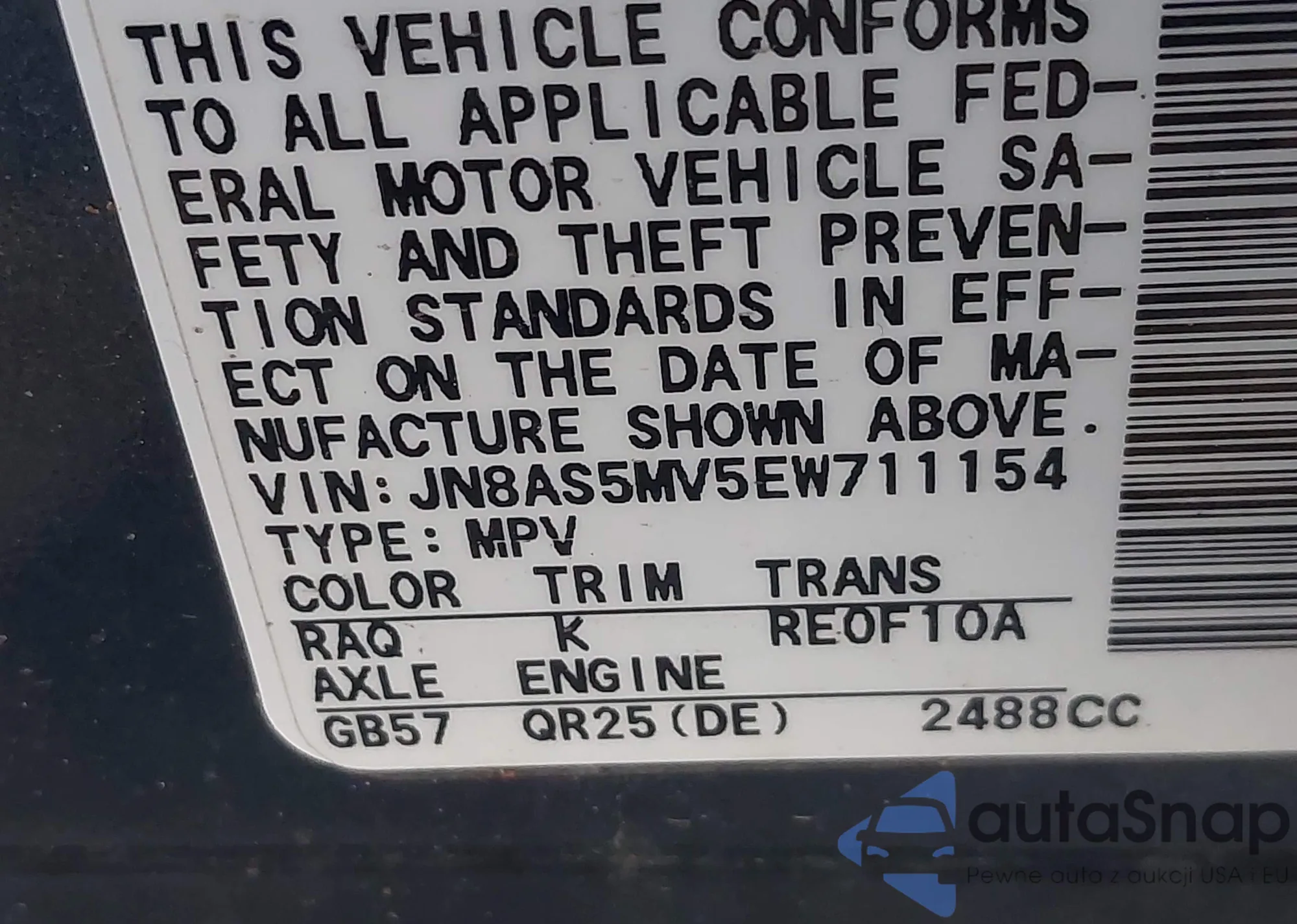 VIN: JN8AS5MV5EW711154