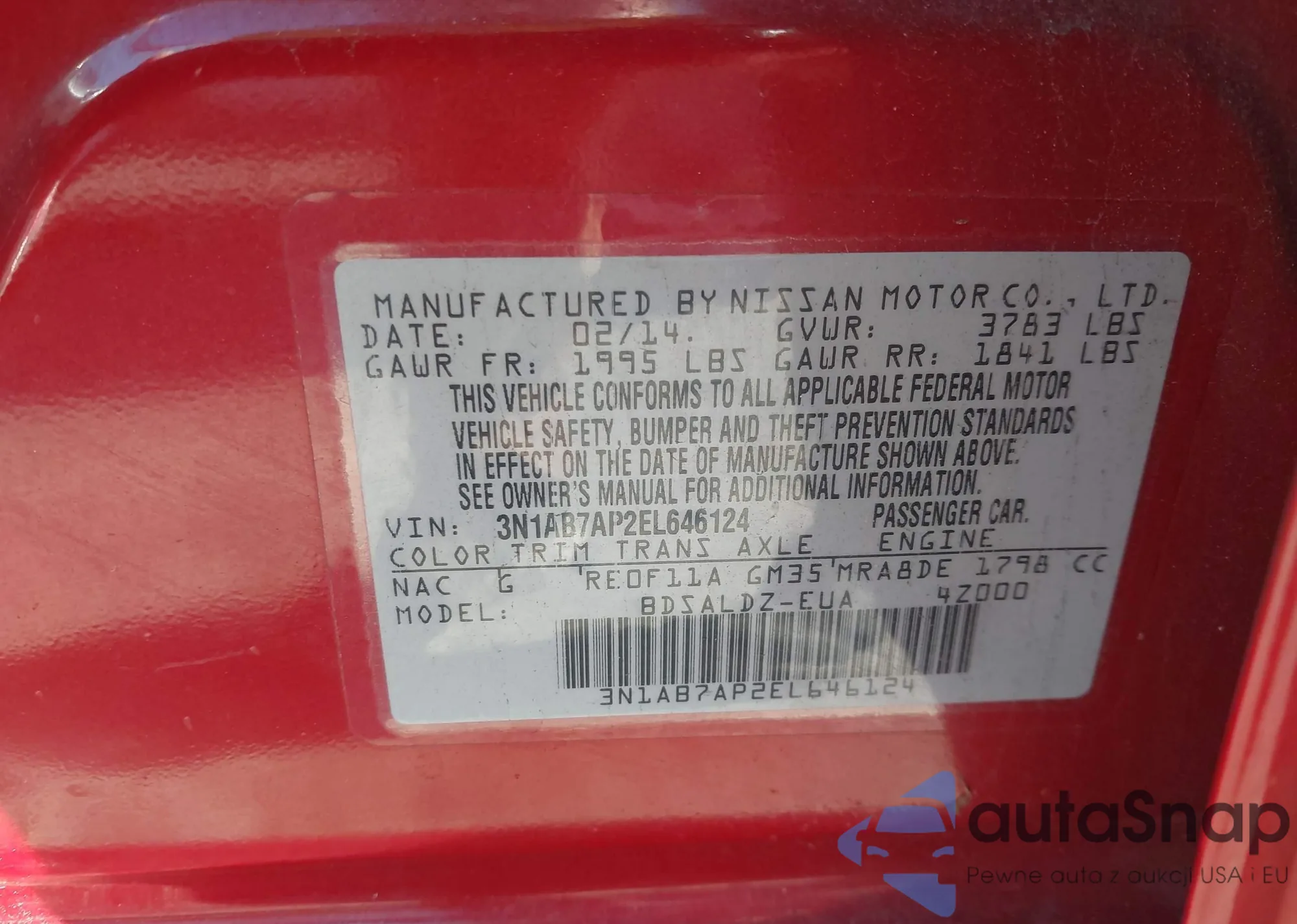 VIN: 3N1AB7AP2EL646124