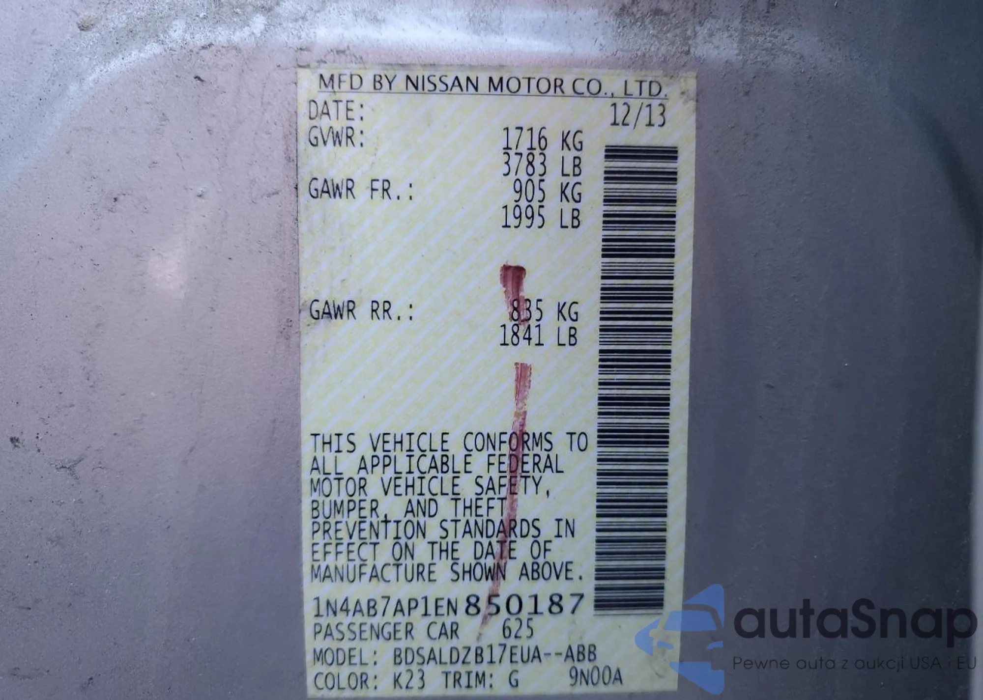 VIN: 1N4AB7AP1EN850187