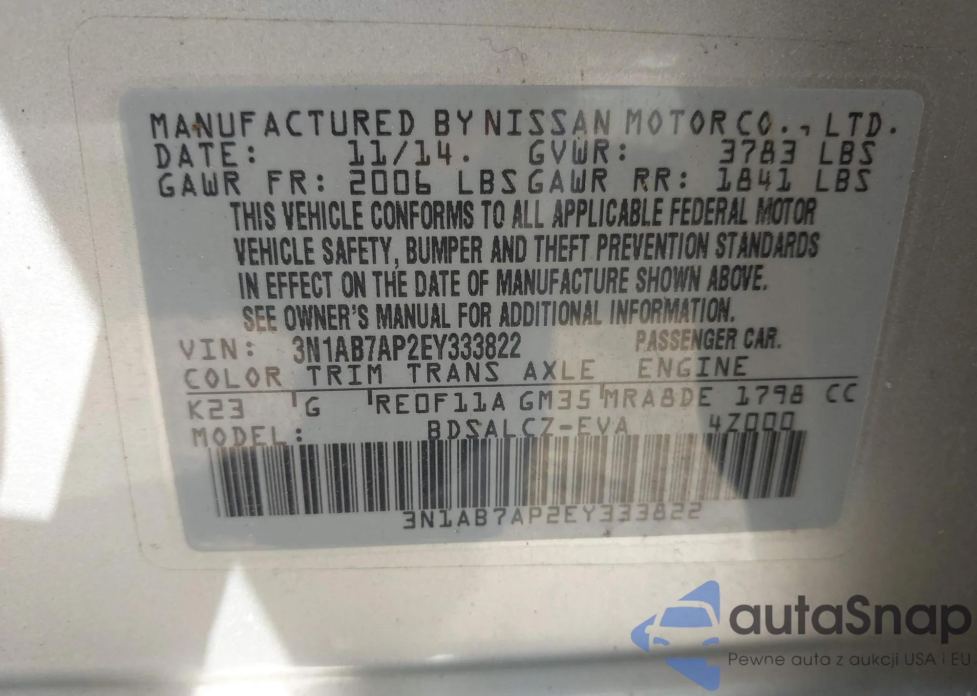 • VIN: 3N1AB7AP2EY333822