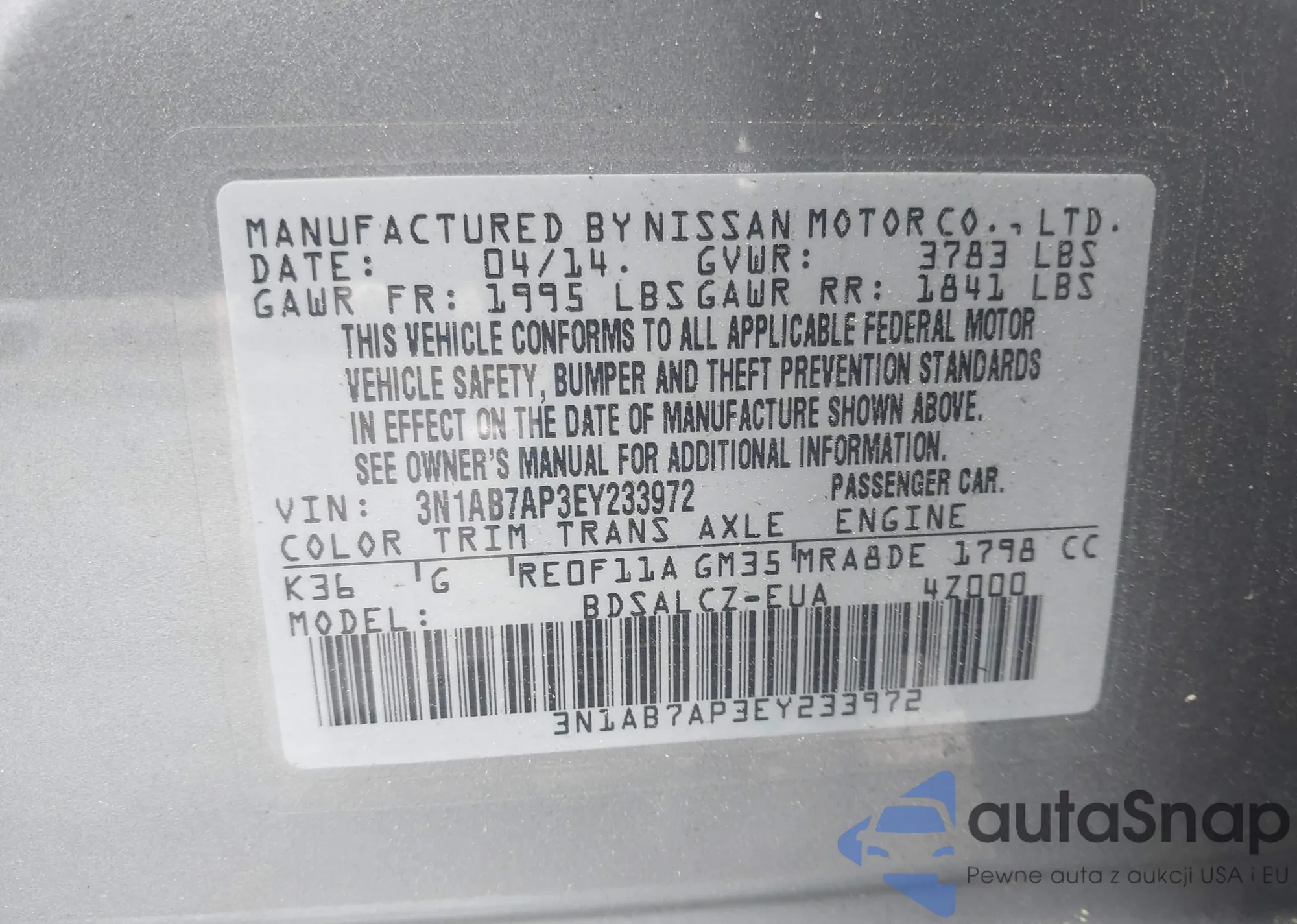 VIN: 3N1AB7AP3EY233972
