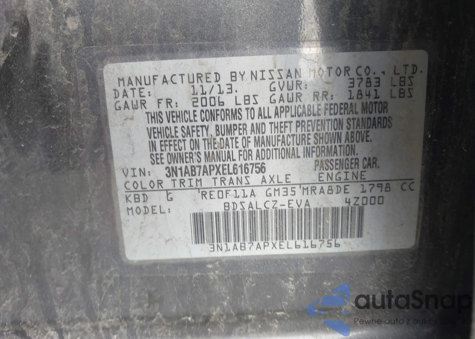 VIN: 3N1AB7APXEL616756