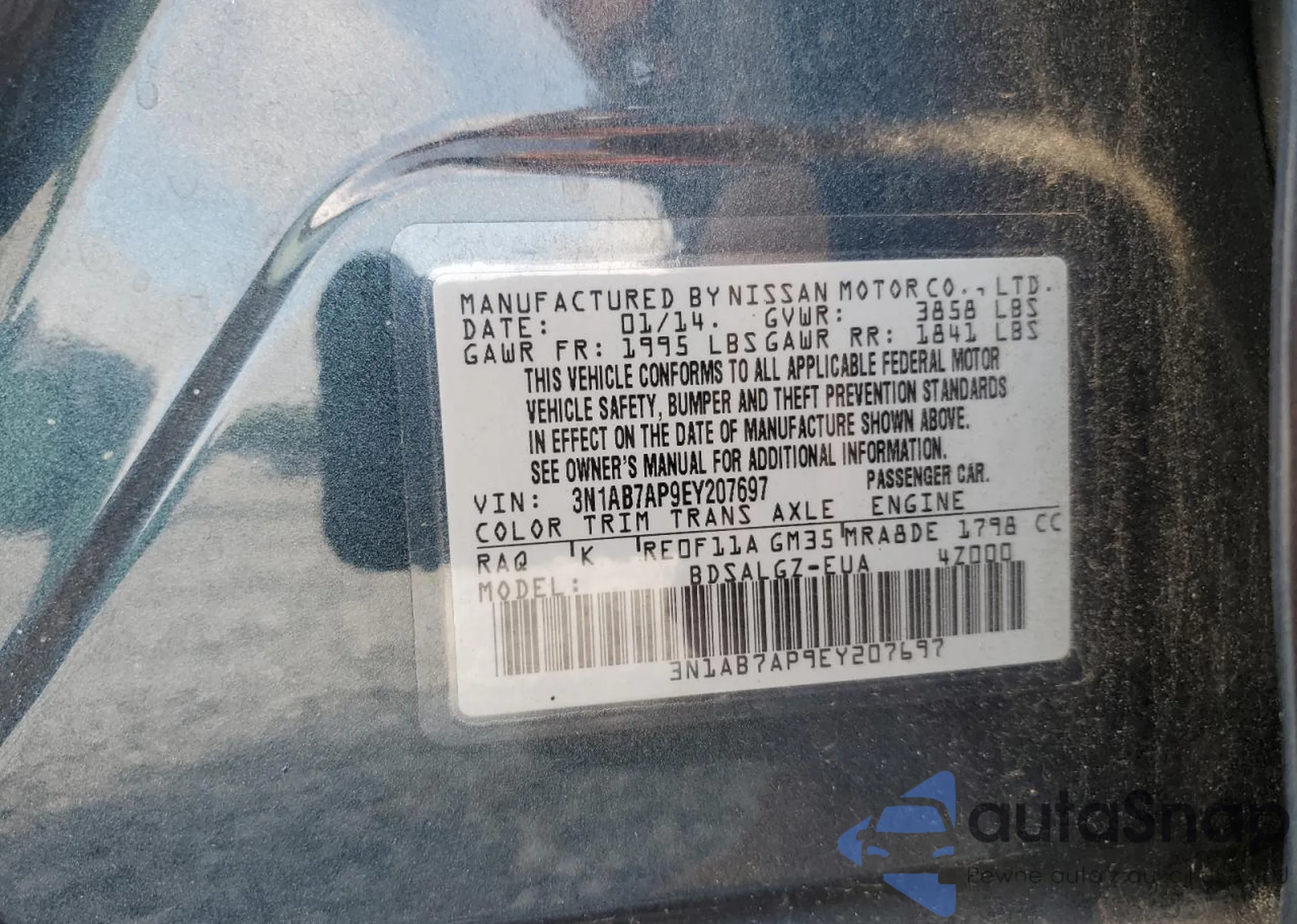 VIN: 3N1AB7AP9EY207697