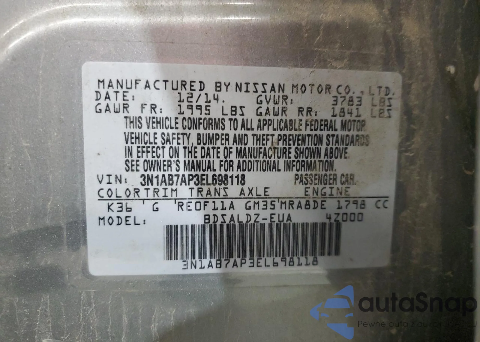 VIN: 3N1AB7AP3EL698118