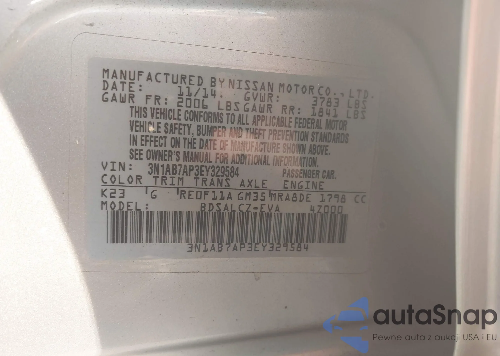 VIN: 3N1AB7AP3EY329584