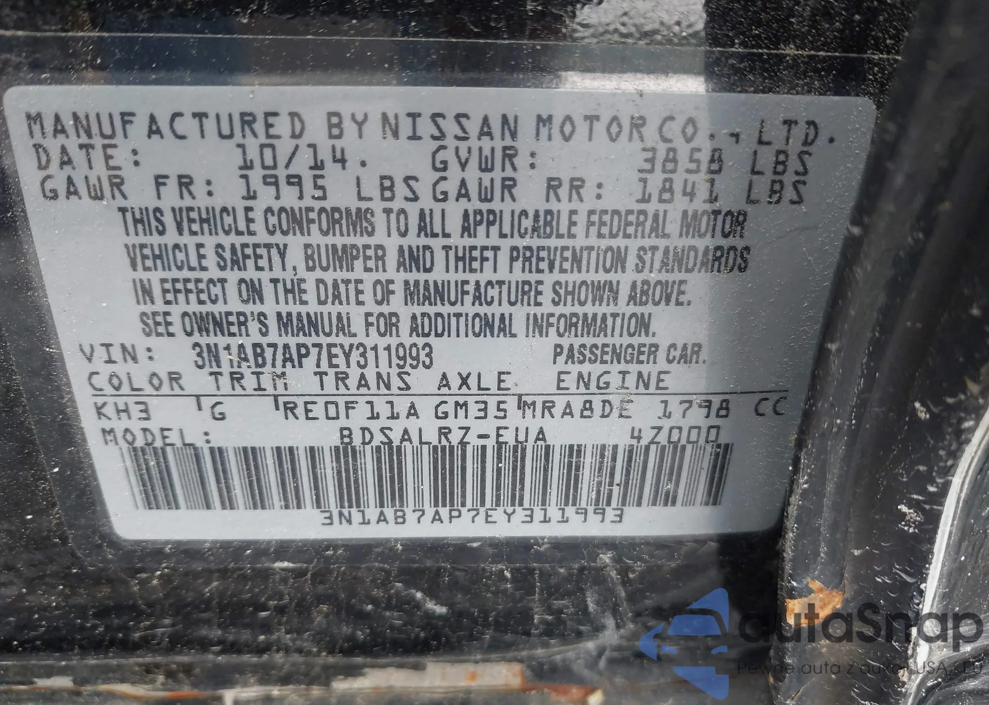 VIN: 3N1AB7AP7EY311993