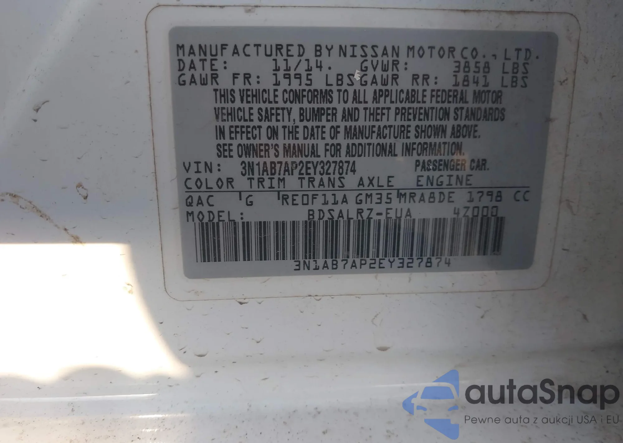 VIN: 3N1AB7AP2EY327874