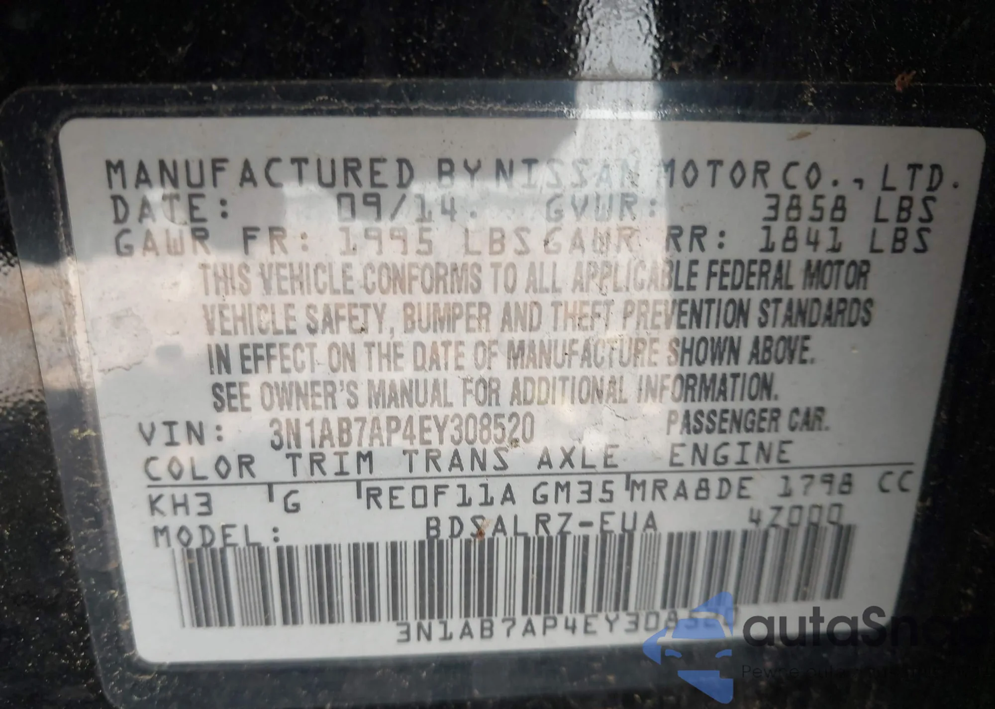 VIN: 3N1AB7AP4EY308520