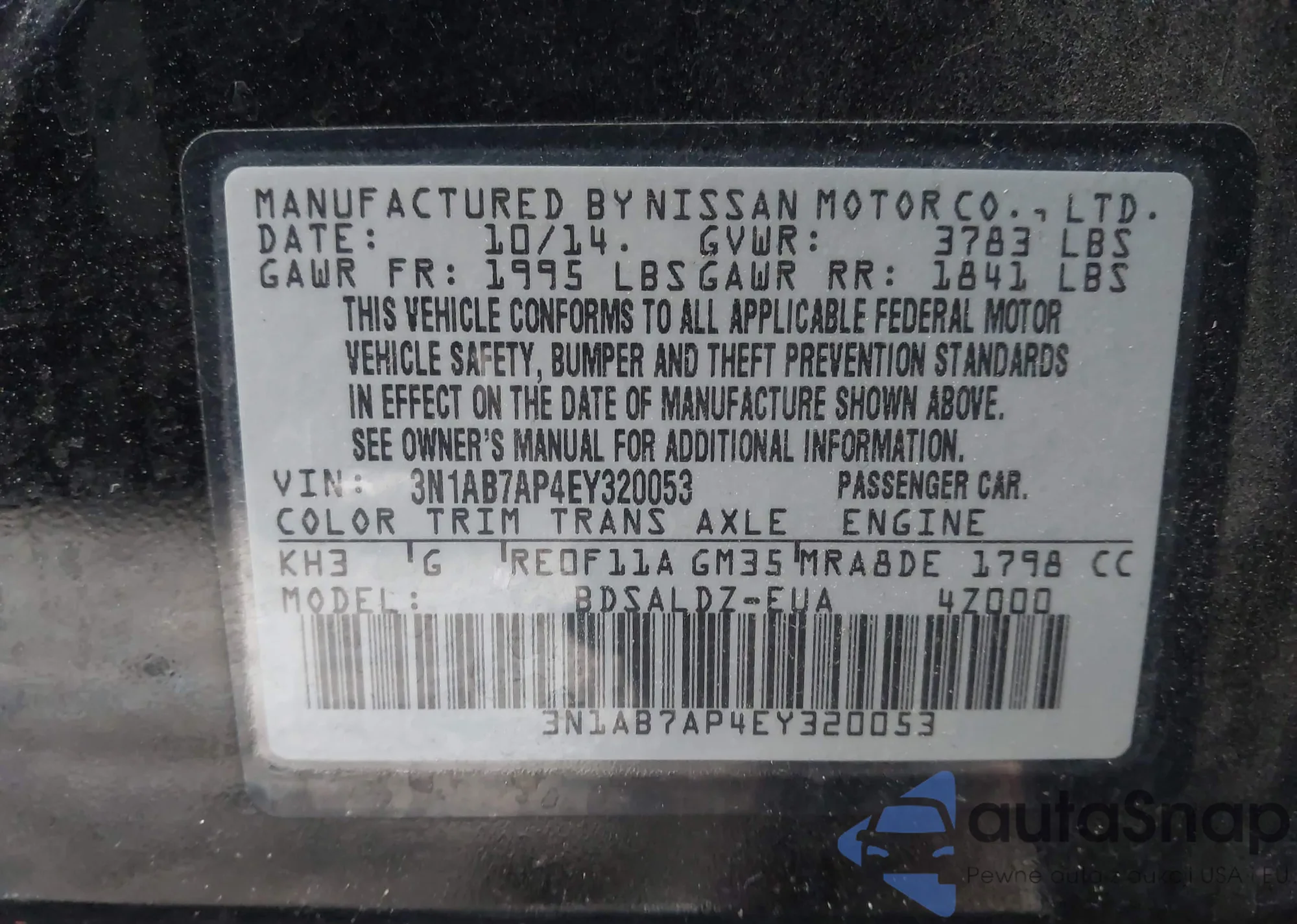 VIN: 3N1AB7AP4EY320053