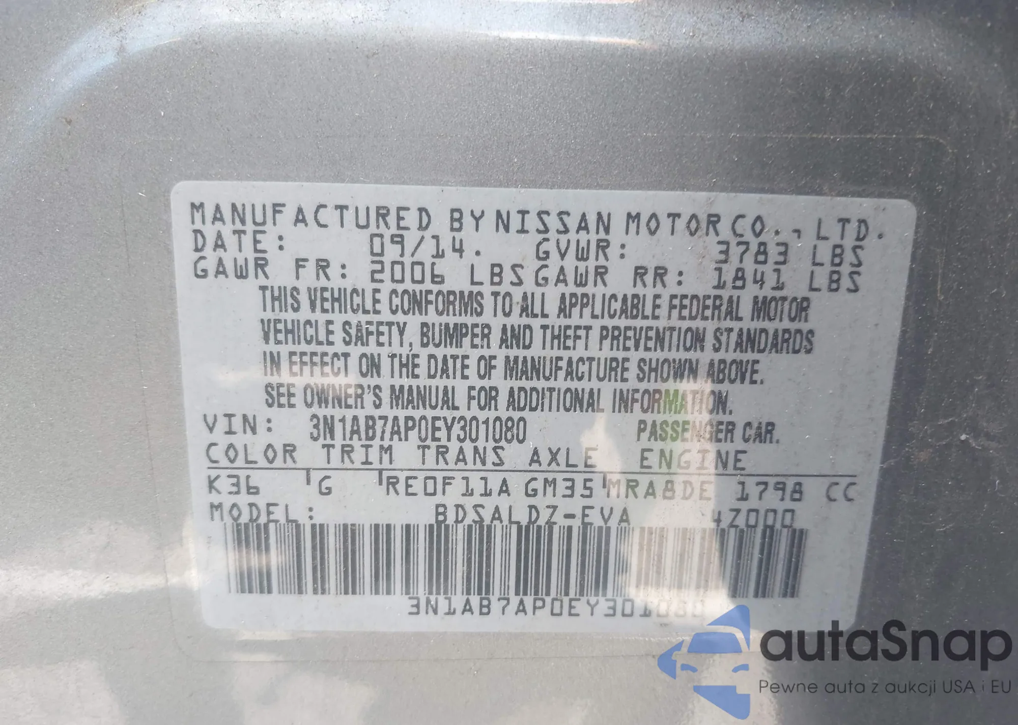 VIN: 3N1AB7AP0EY301080