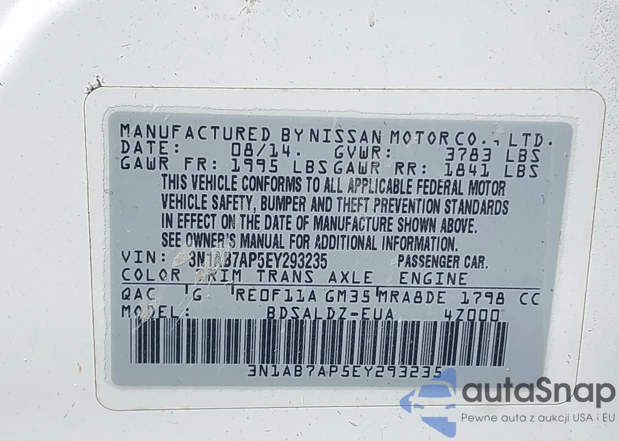 VIN: 3N1AB7AP5EY293235