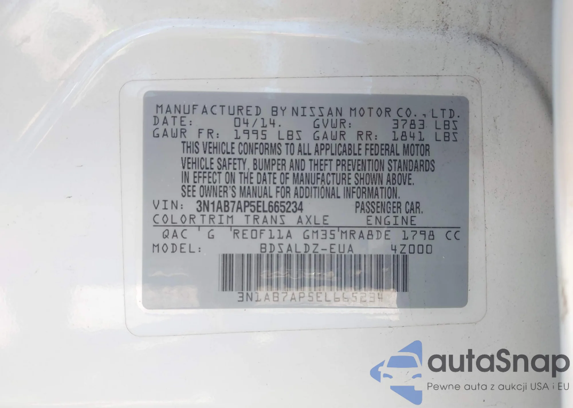 VIN: 3N1AB7AP5EL665234