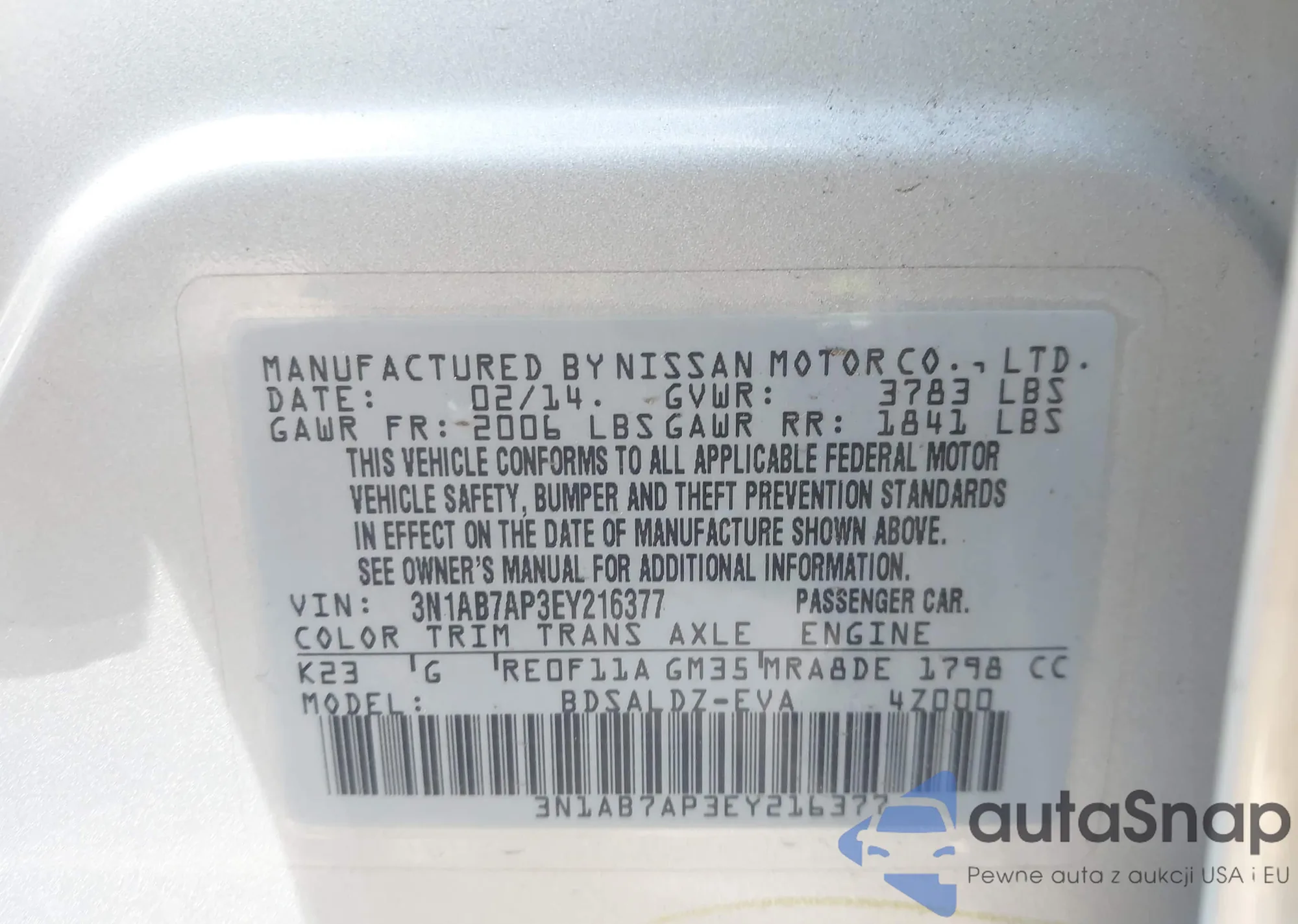 VIN: 3N1AB7AP3EY216377