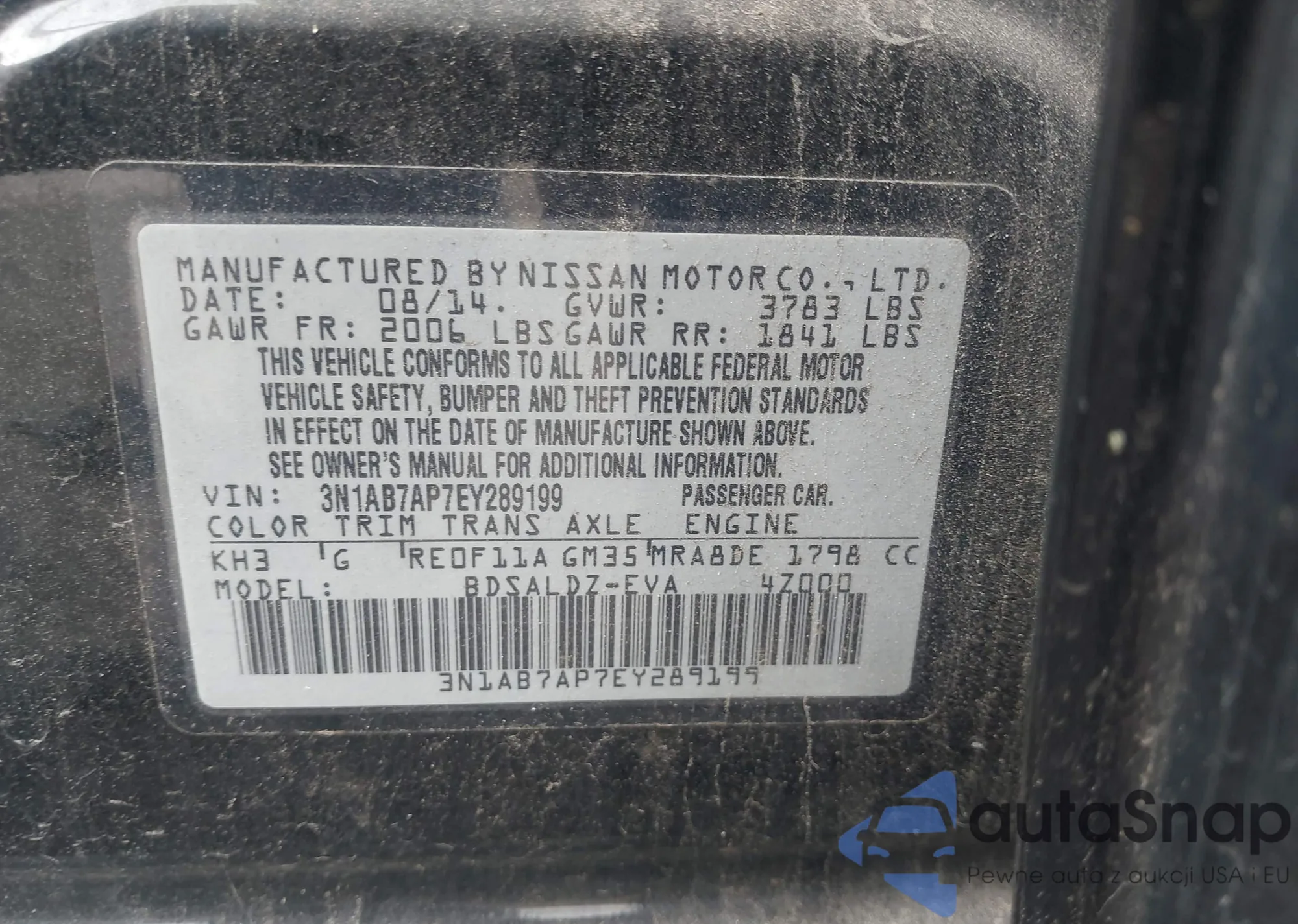 VIN: 3N1AB7AP7EY289199